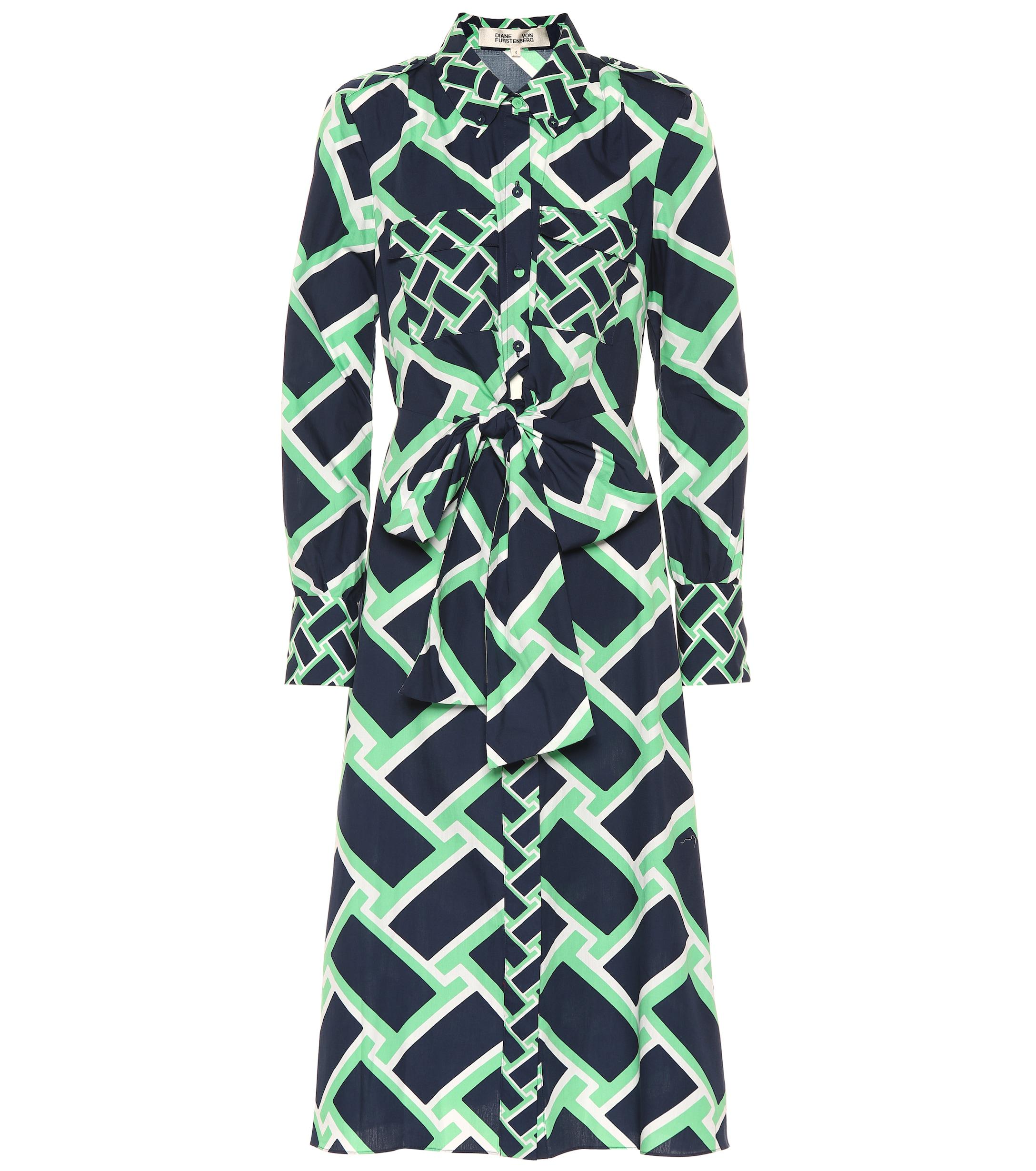 Weiter zu MytheresaMit einem geometrischen Print in Türkis, Weiß und Navyblau überzeugt das Jeri Midikleid von Diane von Furstenberg. Farbe: blau