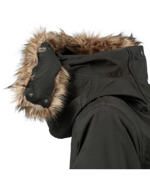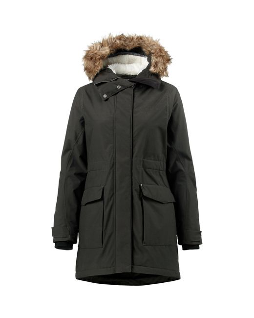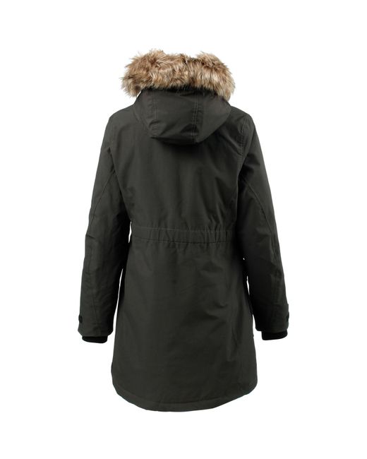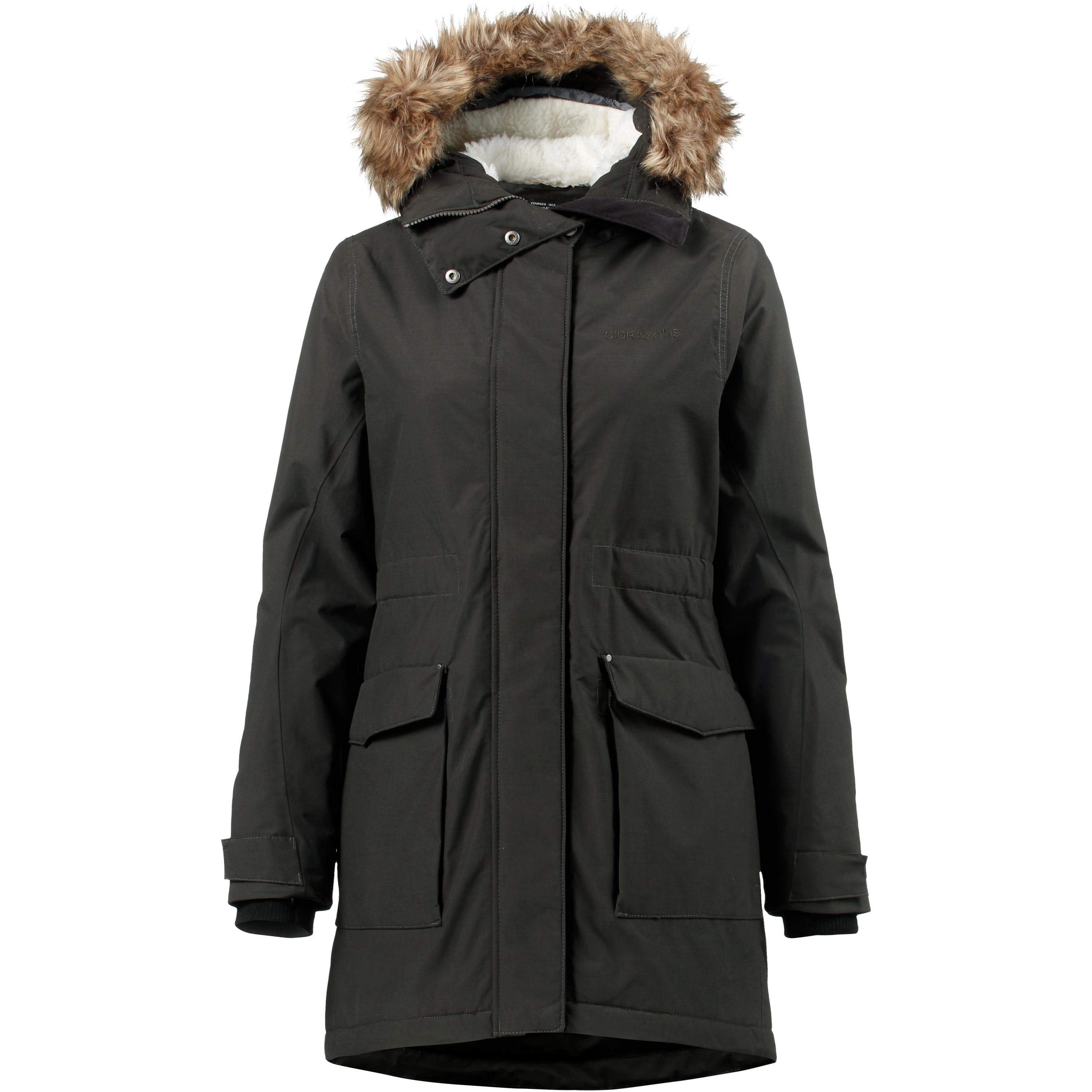 Didriksons 1913 Parka mit wasser- und winddichtem STORMsystem(TM); hoher Kragen mit Druckknöpfen; feste Kapuze mit Kunstfell-Besatz; 2-Wege-Frontreißverschluss mit Druckknopfblende; außen 2 große Pattentaschen und 1 verdeckte Reißverschlusstasche, innen 1 weitere Tasche mit Knopfverschluss; Ärmelabschlüsse mit elastischen Cuffs, Daumenlöchern und Druckknopfriegel zur Weitenverstellung; internes Gummizugband auf Taillenhöhe zur Weitenverstellung; Rückenpartie und Kapuze mit Teddyfell gefüttert; PFC-frei hergestellt; Material I 70% Polyamid, 30% Baumwolle, Material II 100% Polyamid. Farbe: schwarz
