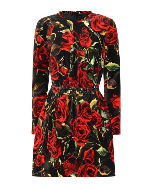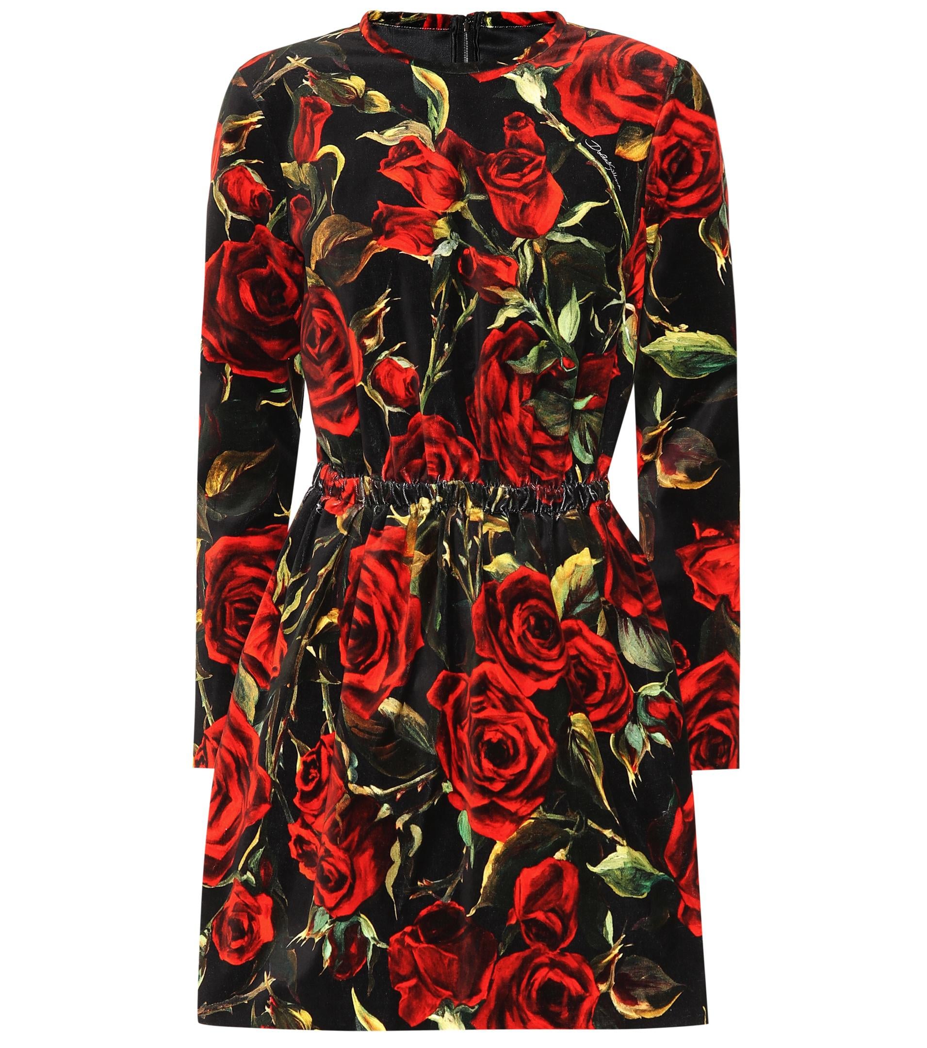 Mit romantischem Charme überzeugt uns dieses schwarze Minikleid von Dolce & Gabbana, das mit dem labeltypischen Rosenprint versehen ist. Farbe: rot