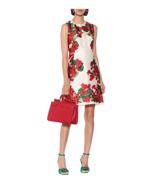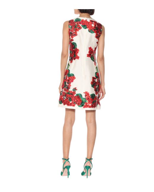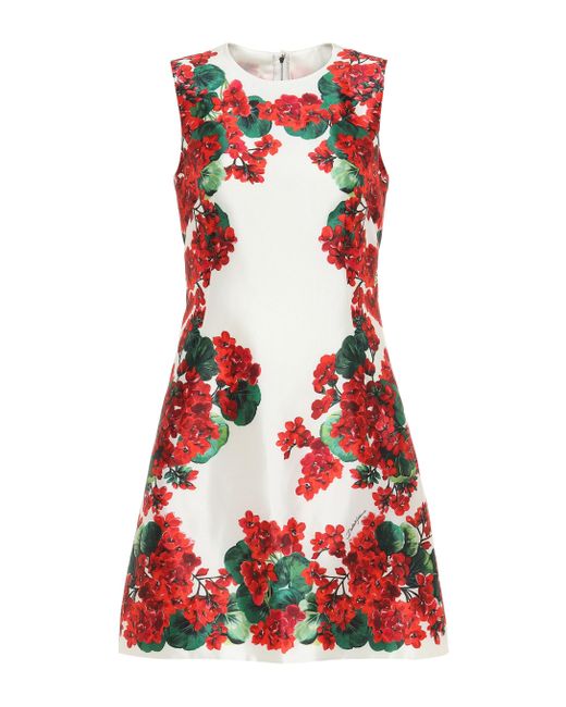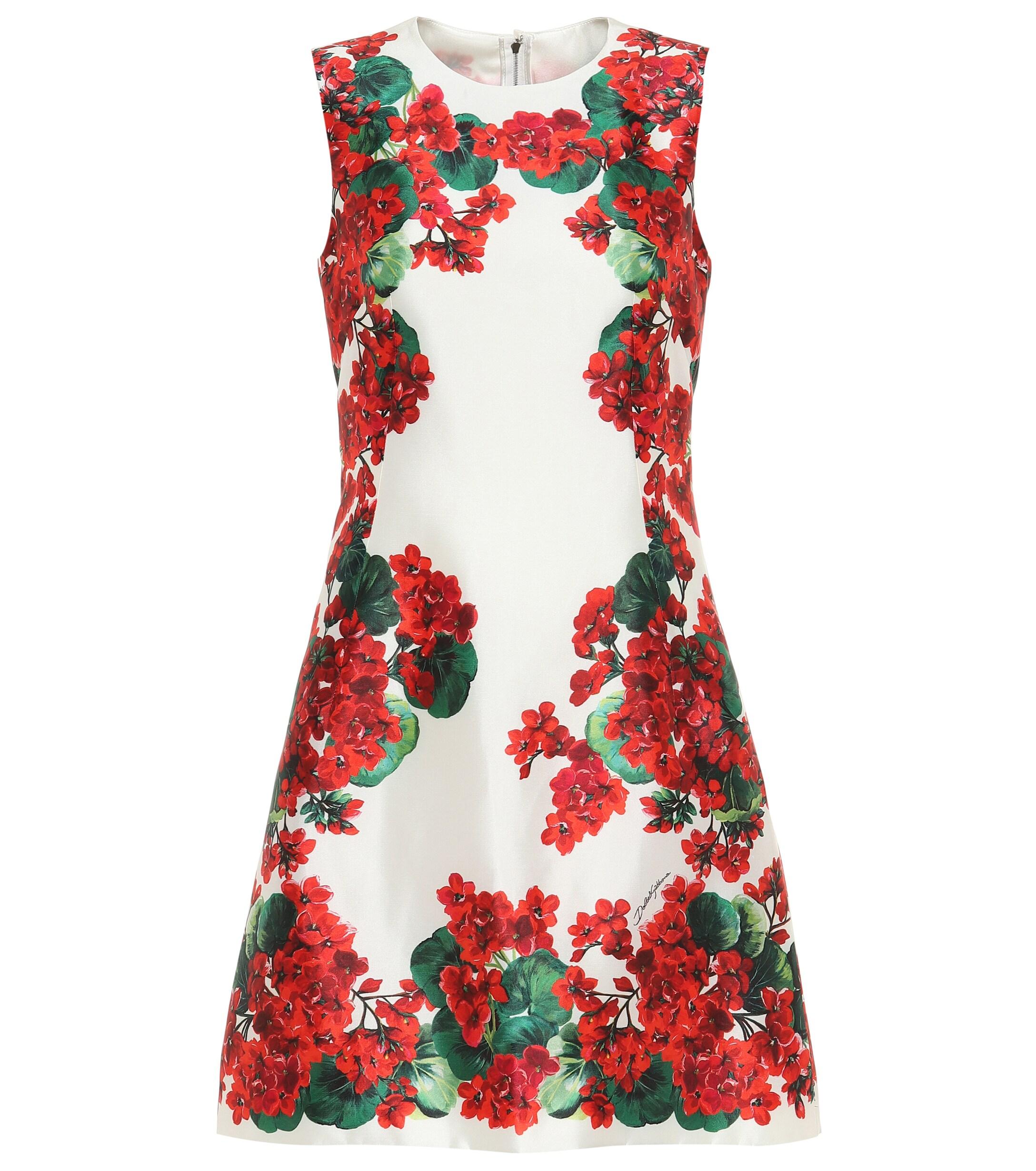 Unverkennbar Dolce & Gabbana: Dieses weiße Minikleid wurde in Italien aus reiner Seide gefertigt und mit einem charmanten, floralen Print in Rot versehen. Farbe: rot