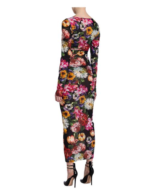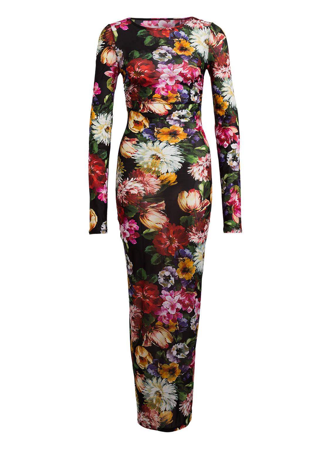 Dieses Kleid von DOLCE&GABANNA lässt Blumenträume wahr werden! Der leicht transparente Stoff verspricht höchsten Tragekomfort, während der cleane Schnitt Ihre Taille durch zwei dezent eingesetzte Raffungen feminin in Szene setzt. Begleitet wird das Design von einer soften Stretch-Qualität – setzen Sie ein Fashion-Statement! Details: Taillierter Schnitt. Maxi-Länge. Rundhalsausschnitt. Lange Ärmel. Abgerundeter Saum. Allover-Blumen-Print. Softe Stretch-Qualität. Made in Italy. Maße bei Größe 36:- Gesamtlänge ab Schulter: 145 cm- Brustweite: 80 cm- Taillenweite: 64 cm. Farbe: mehrfarbig