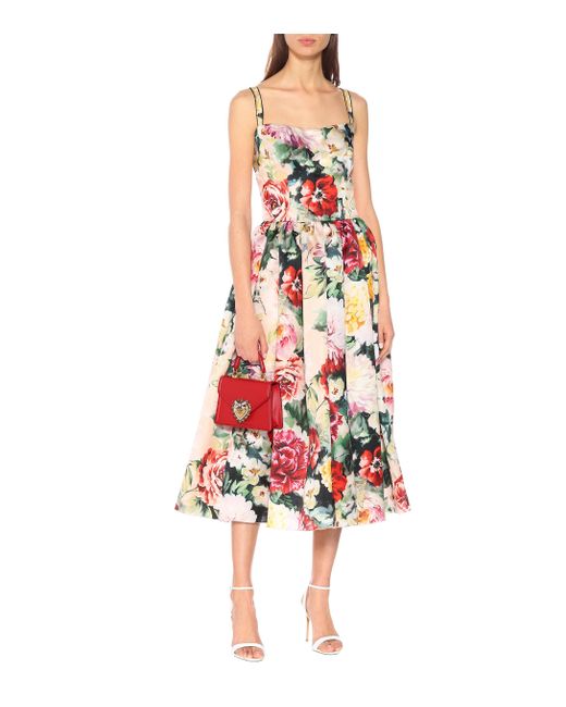 Domenico Dolce und Stefano Gabbana begeistern sizilianische Frauen und die Lebensfreude, die sie versprühen – dieses geblümte Midikleid ist eines der Modelle, die wir uns ausgesprochen gut an den Musen der Designer vorstellen können. Es wurde in Italien aus mittelschwerem Duchesse-Seidensatin gefertigt und setzt sich aus einem verstärkten Oberteil – dank dessen Sie darunter keinen BH tragen müssen – und einer in Falten gelegten Rockpartie zusammen, die aufgrund des Organza-Petticoats besonders voluminös ausfällt. Hier gezeigt mit: Valextra Tote, Gianvito Rossi Sandalen, Jennifer Fisher Ohrringen, Laura Lombardi Kette. Mehrfarbiger Duchesse-Seidensatin. Verdeckter Reißverschluss hinten. 100 % Seide. Trockenreinigung. Hergestellt in Italien.