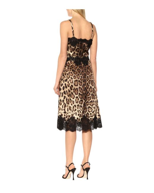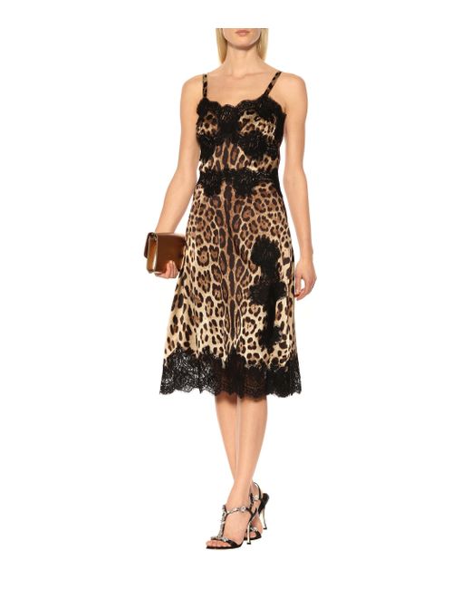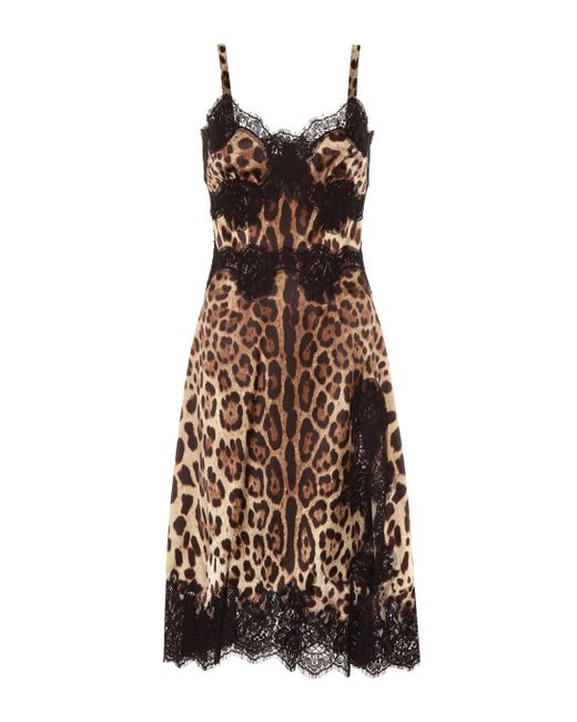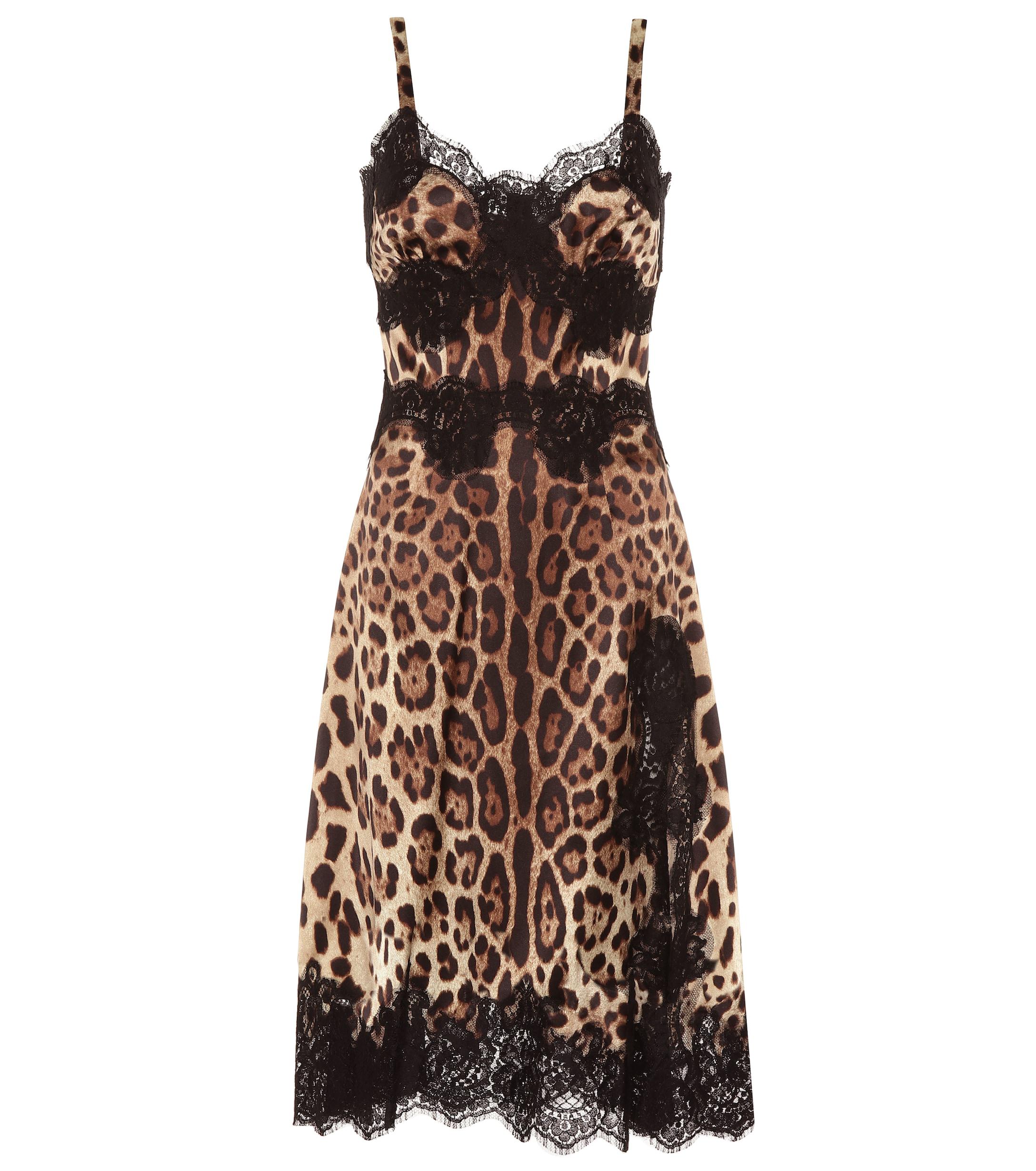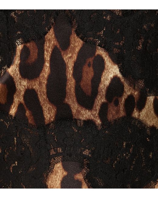 Das kurze Slipdress von Dolce & Gabbana überzeugt mit einer edlen Kombination aus braunen Leopardenmuster und schwarzem Spitzeneinsatz. Farbe: braun
