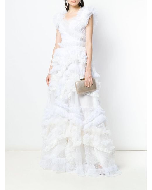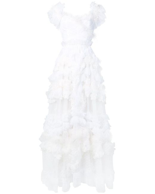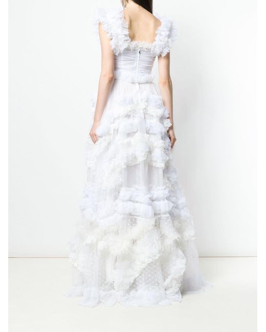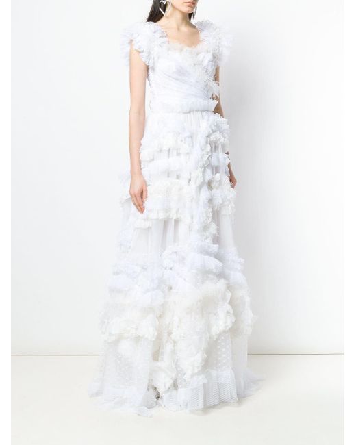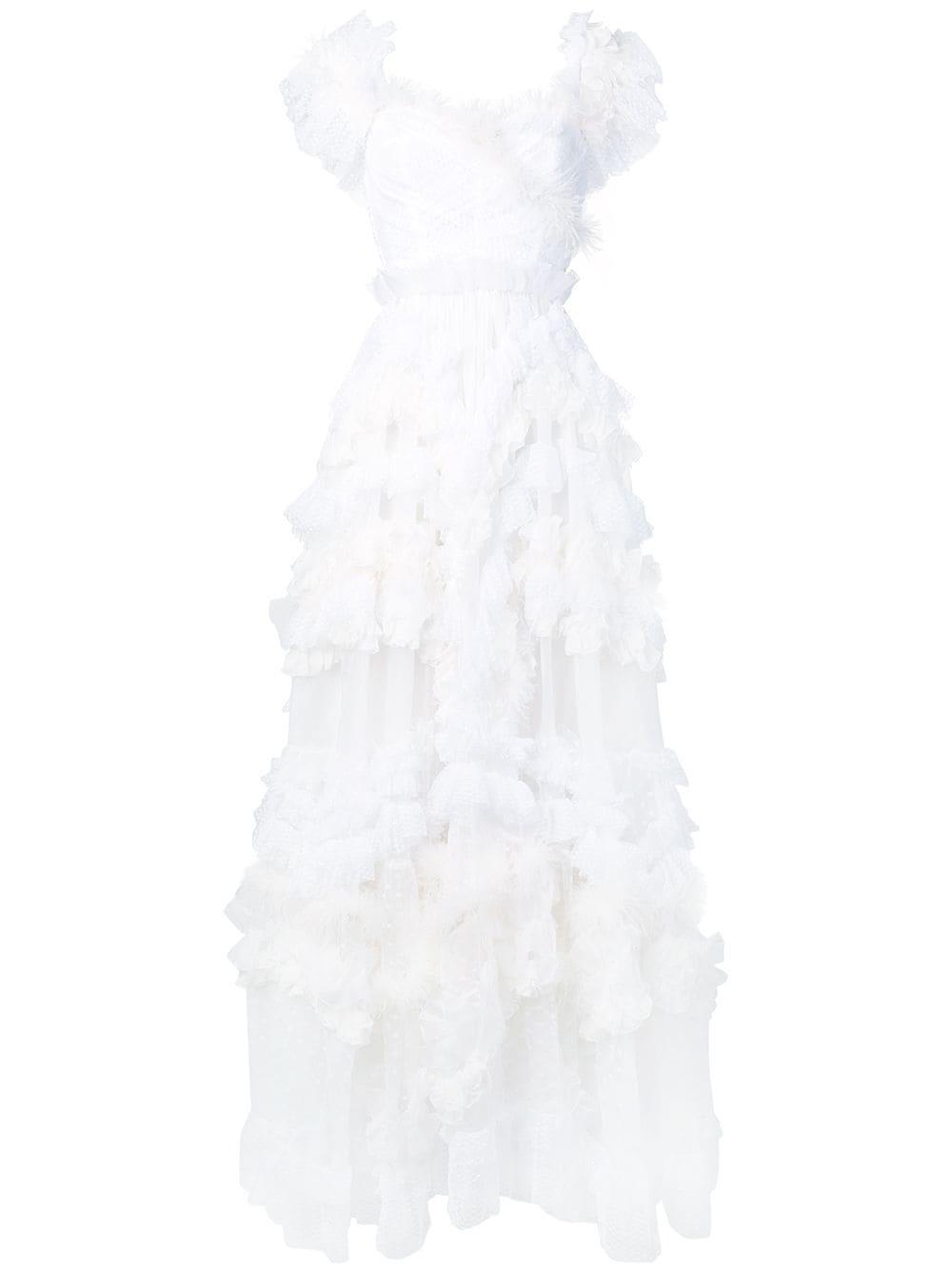 Sposa' Robe von Dolce & Gabbana. Merkmale: Herzausschnitt, kurze Ärmel, betonte Taille, ausgestellter Schnitt, langer Schnitt und verdeckter Reißverschluss hinten. Farbe: weiß