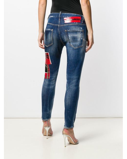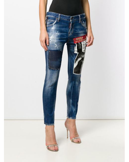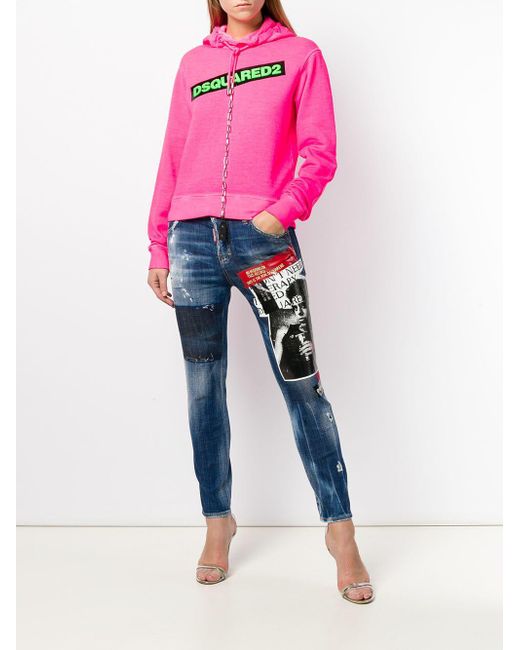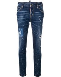 No Imitators' Jeans aus Baumwollgemisch von Dsquared2. Merkmale: Bund mit Gürtelschlaufen, Knopf- und Reißverschluss vorne, seitliche Taschen, verblasster Effekt, Logo-Patch hinten und reguläre Länge. Farbe: blau