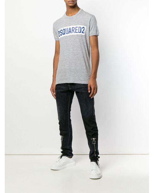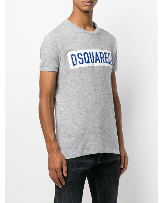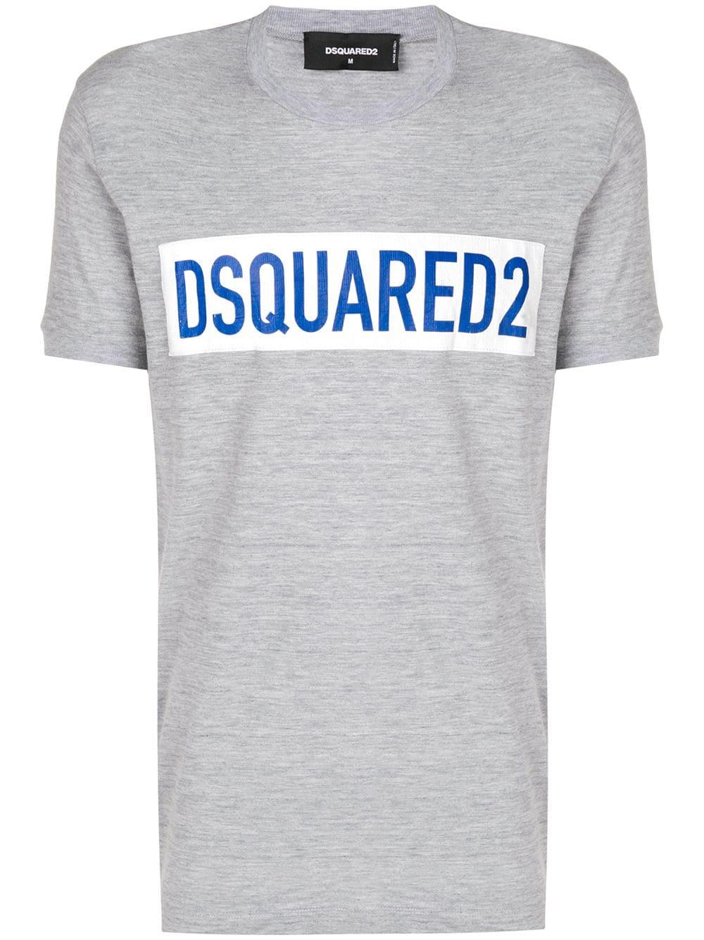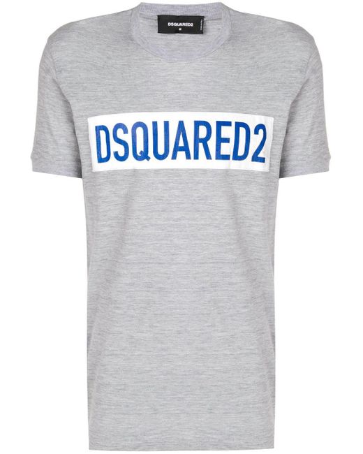 T-Shirt mit Logo aus Baumwollgemisch von Dsquared2. Merkmale: runder Ausschnitt, mittiger Logo-Print und enganliegende Silhouette. Farbe: grau