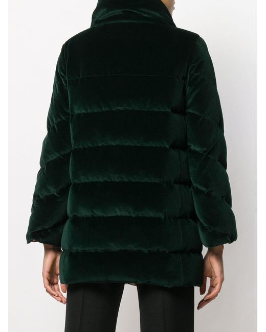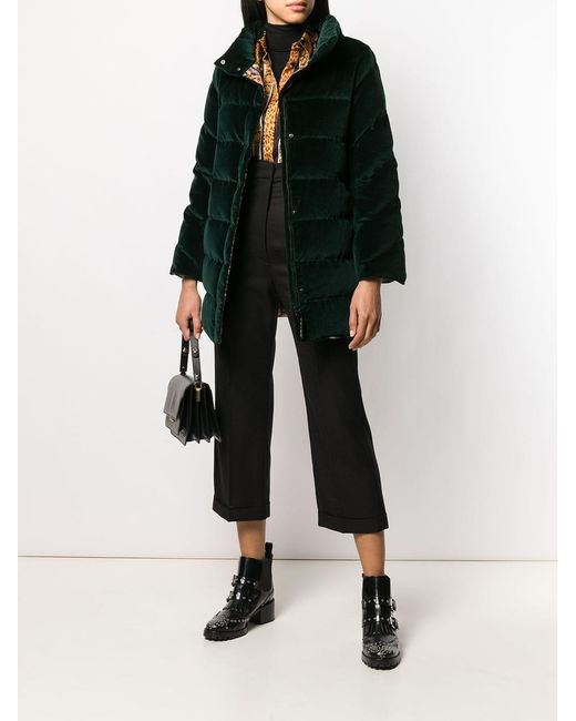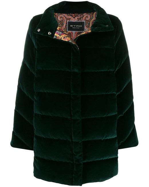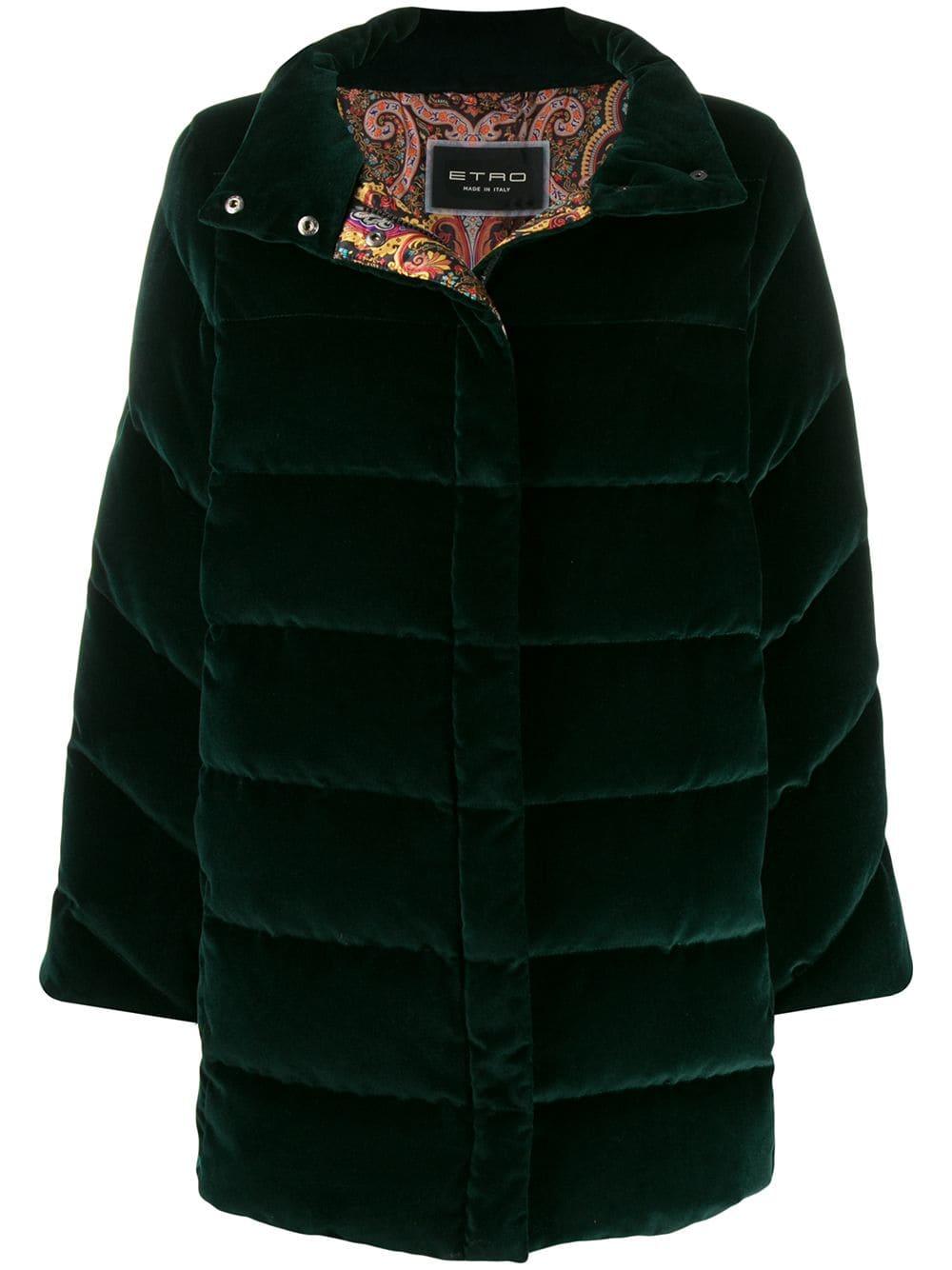 Einreihiger Mantel von Etro. Merkmale: Knopfkragen, Ziernähte, kontrastierende Einsätze, gefüttert und gerader Saum. Farbe: grün