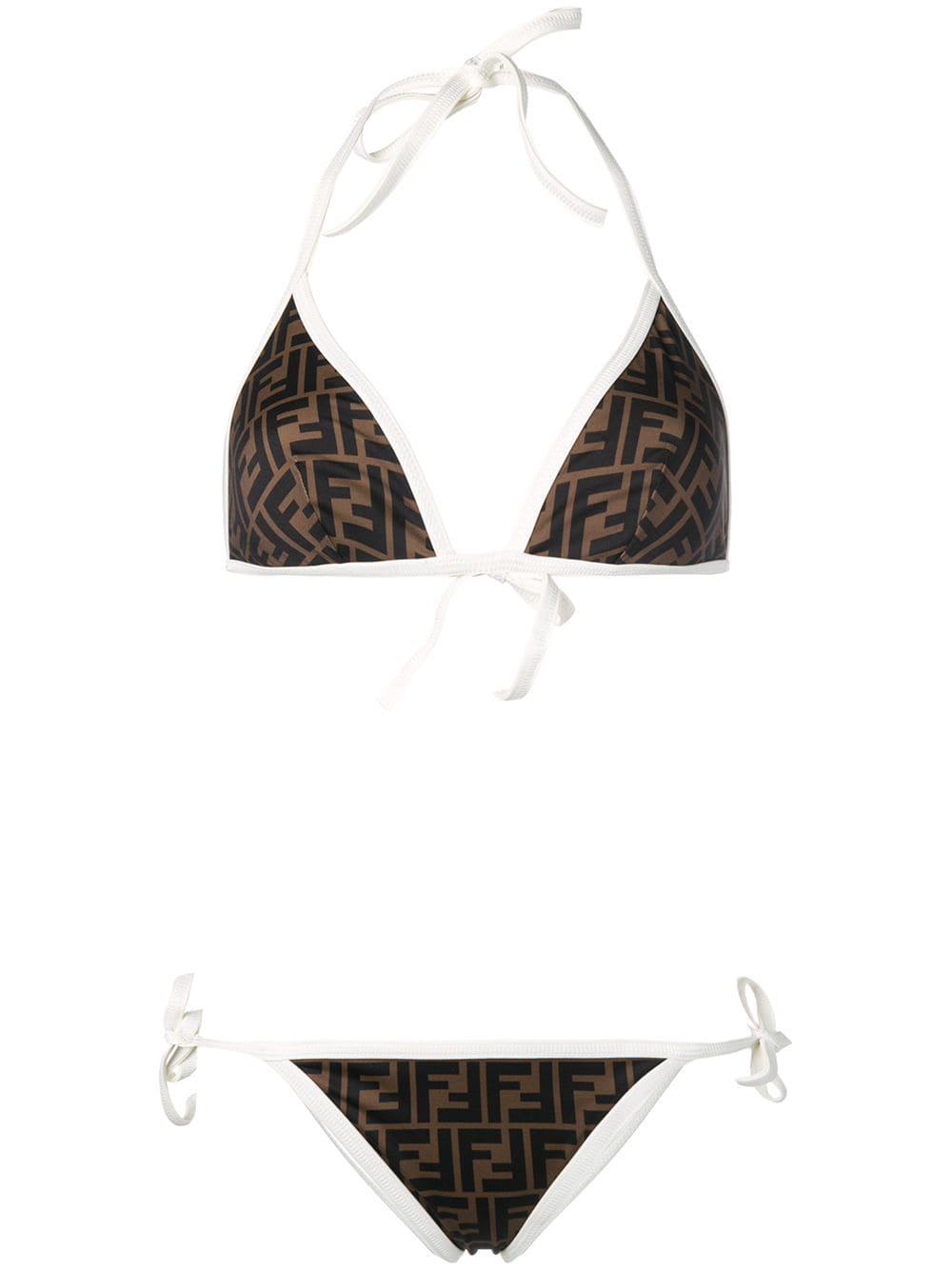 Wendbarer Bikini mit FF-Muster von Fendi. Farbe: braun