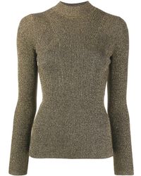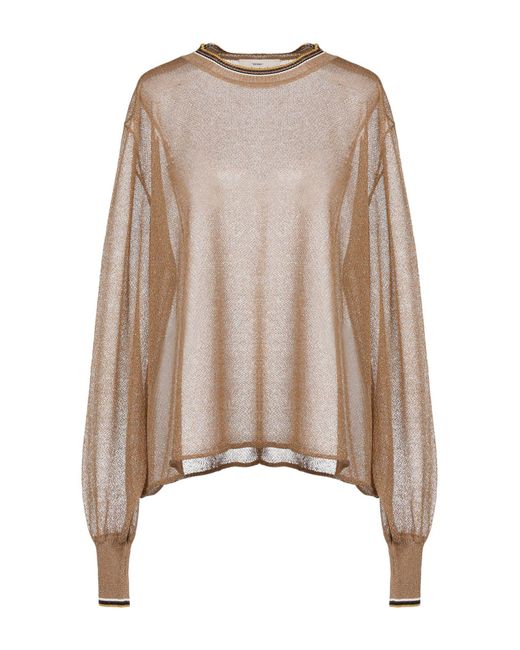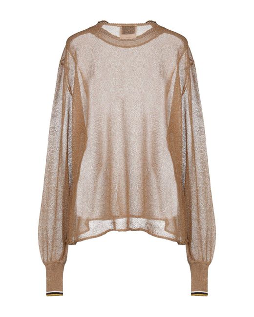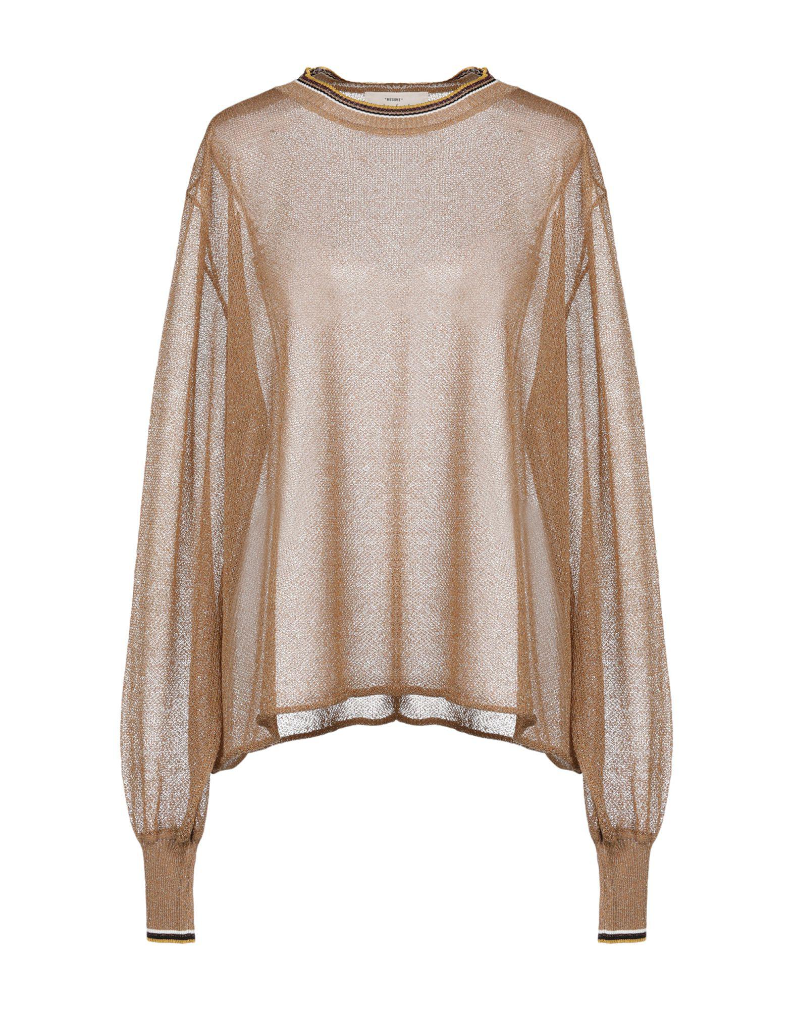 Handgestrickt. Lamé. Ohne Applikationen. Zweifarbiger Print. Rundhalsausschnitt. Leichter Strick. Lange Ärmel. Ohne Taschen. 70% Viskose, 15% Polyester, 15% Metallfaser. Farbe: mettallic