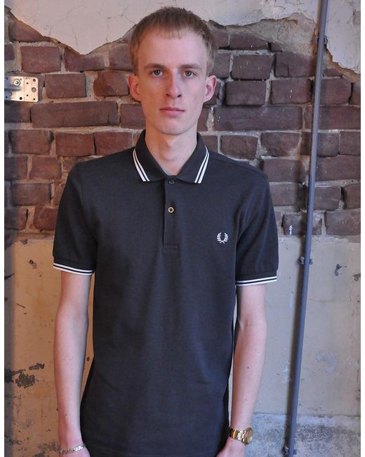 Dunkelgraues doppelpolo von fred perry. Das klassische fred perry polo mit kurzen ärmeln und doppeltem kragen. Anthrazit. Pikee gewebt. Fred perry logo auf der linken brust. 2 taste. Kurze ärmel. Lose gerade ausführung. Längengröße m = 72 cm. Material: 100% baumwolle. Farbe: grau