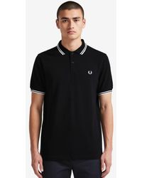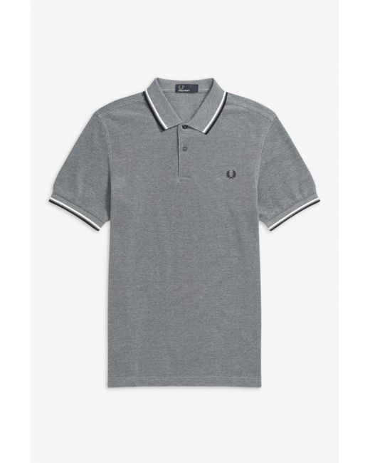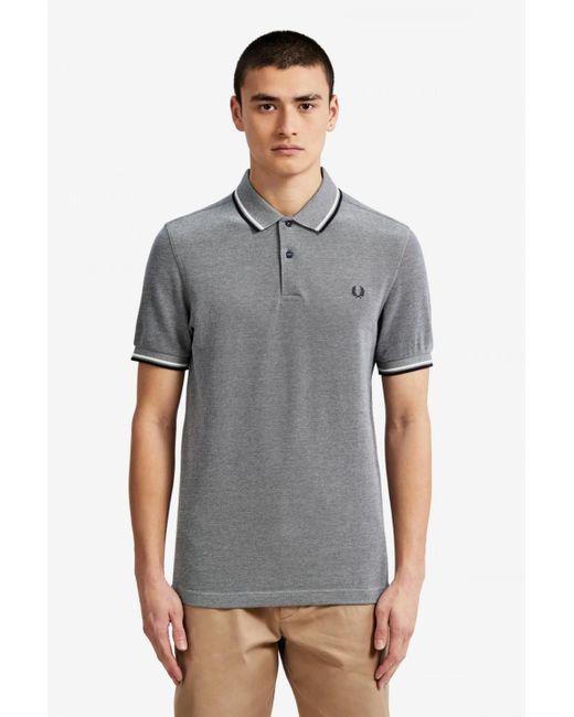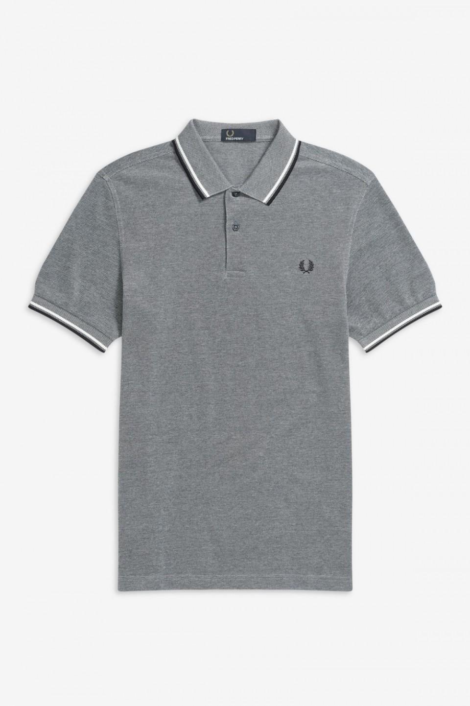 Germinated twin tipped polo von fred perry blau / weiß. Mixed pique polo von fred perry mit kurzen ärmeln und doppelkragen. Carbon blue / snow white nahkampf. Pikee gewebt. Fred perry logo auf der linken brust. 2 tasten. Kurze ärmel. Lose gerade ausführung. Längengröße m = 72 cm. Material: 100% baumwolle. Farbe: grau