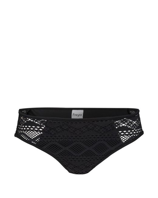 Die Bikini-Hose SWEETHEART von Freya punktet mit semitransparenten Seitenteilen und einem Allover-Look mit Häkelspitze. Das Modell kommt in Kombination mit dem passenden Bikini-Top perfekt zur Geltung. Details: Gerader Beinausschnitt. Seitliche Cut-outs mit Bindebändern. Häkelspitzen-Muster. Farbe: schwarz