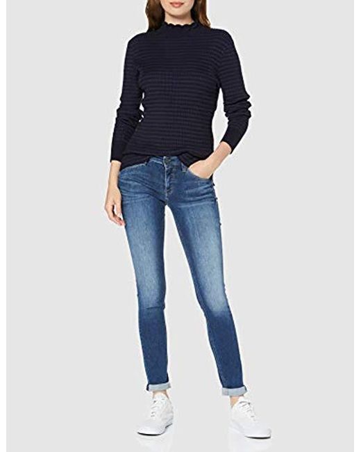 Style: Casual, Retro, Streetwear - Schnitt: Slim Fit - Armlänge: langärmlig - Muster: uni - Bleichen - Pflegehinweise: Nicht bleichen - Bügeln - Pflegehinweise: Nicht heiß bügeln (110 °C), Vorsicht beim Bügeln mit Dampf - Professionelle Textilpflege - Pflegehinweise: Nicht trockenreinigen - Trocknen - Pflegehinweise: Natürliches Trocknen - Liegend trocknen - Waschen - Pflegehinweise: Normalwaschgang 30 °C - BulletPointsText0 Casual, Retro, Streetwear - BulletPointsText1 Schnitt: Slim Fit - BulletPointsText2 gestrickter Pulli - BulletPointsText3 Logo-Patch - BulletPointsText4 langärmlig Material: 75% Baumwolle, 20% Viskose, 5% Elasthan. Farbe: blau