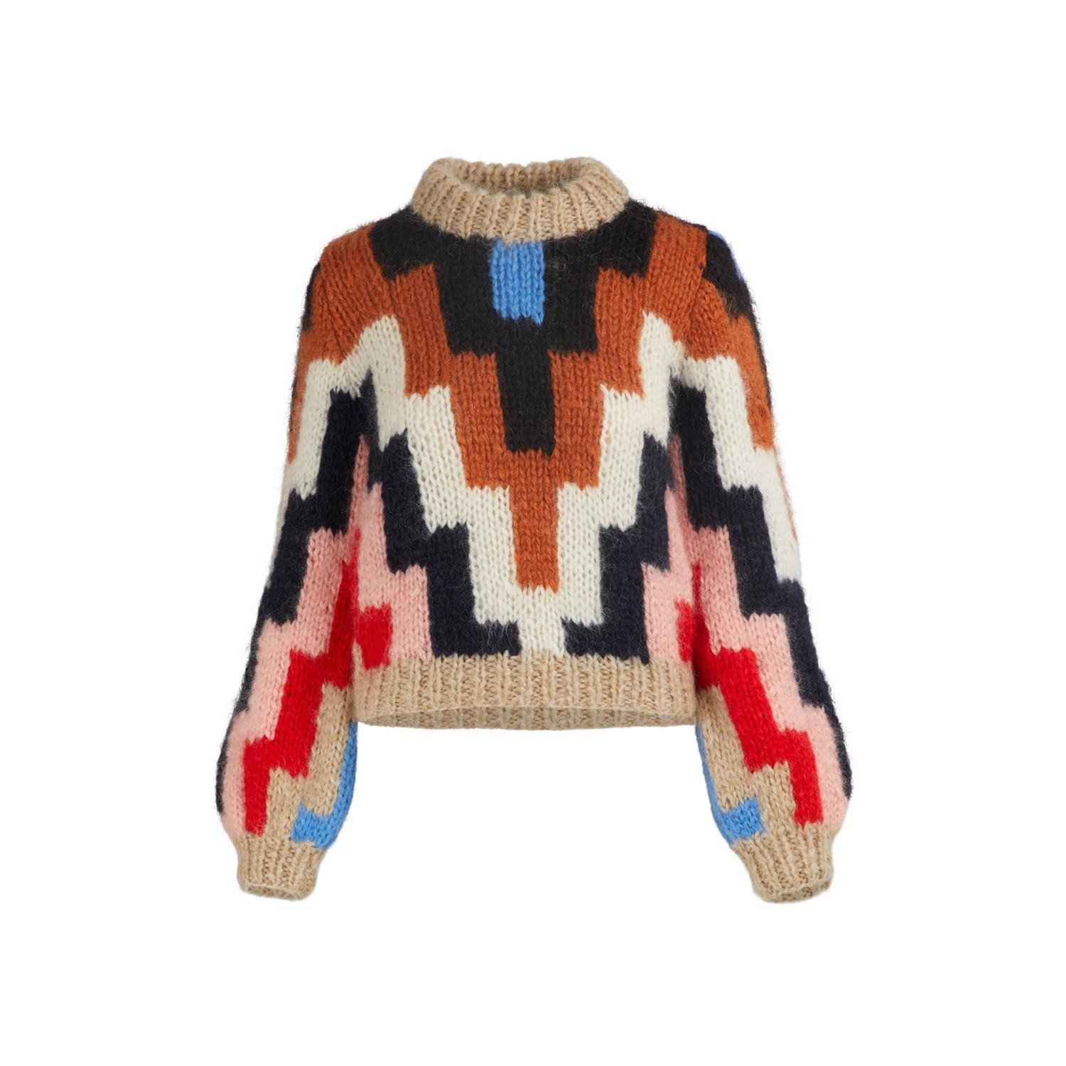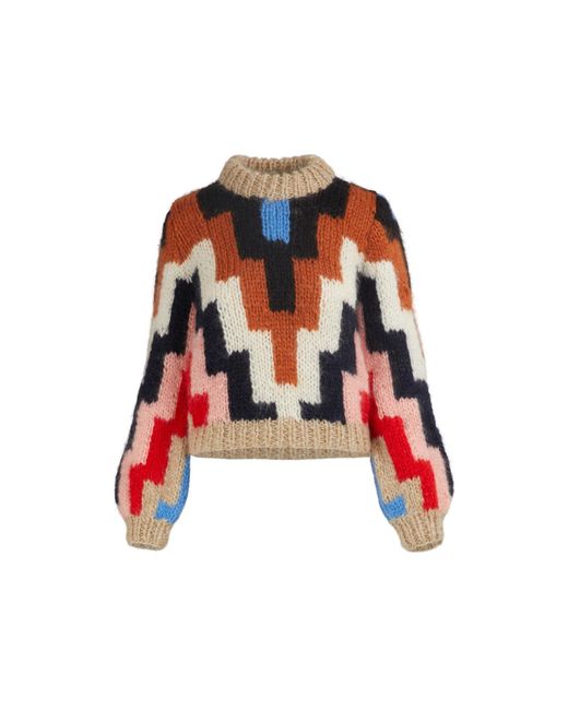 Mit diesem Pullover Julliard hat Ganni Spaß und liefert ein Stück mit einem fröhlichen und dynamischen Geist. Die Marke zeichnet die Silhouette einer freien und unabhängigen Frau. Farbe: mehrfarbig