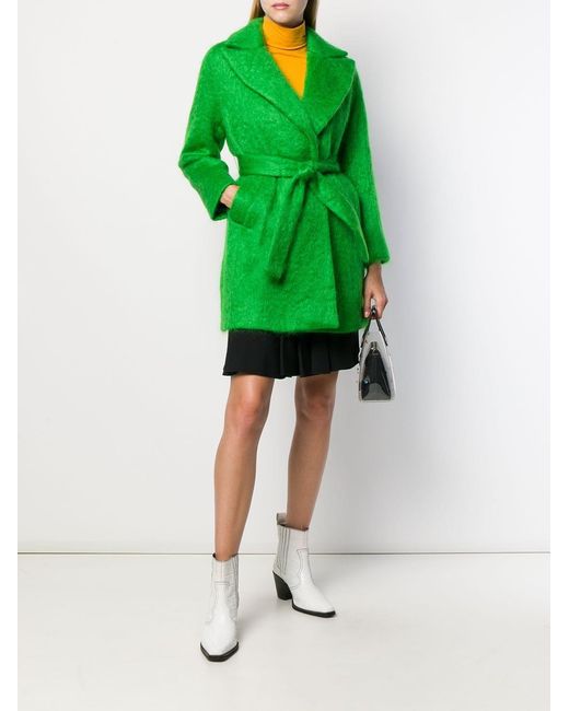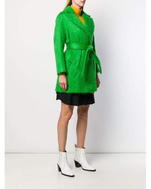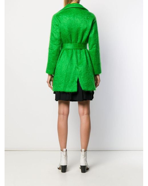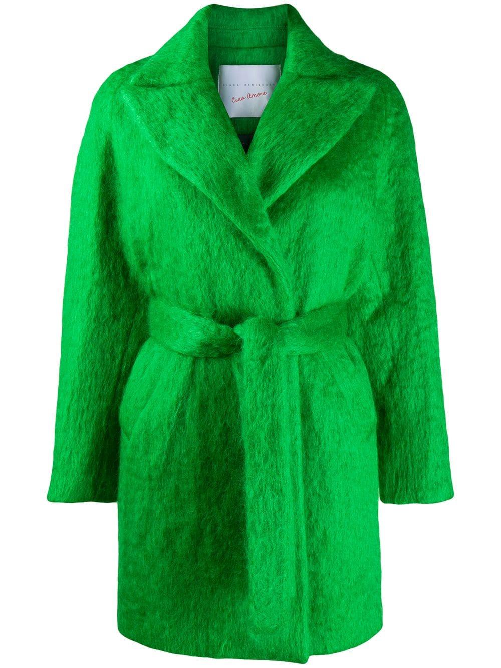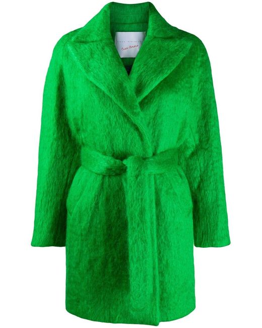 Trenchcoat aus Filz von Giada Benincasa. Merkmale: breites Revers, Taillengürtel, lange Ärmel und zwei Vordertaschen. Farbe: grün