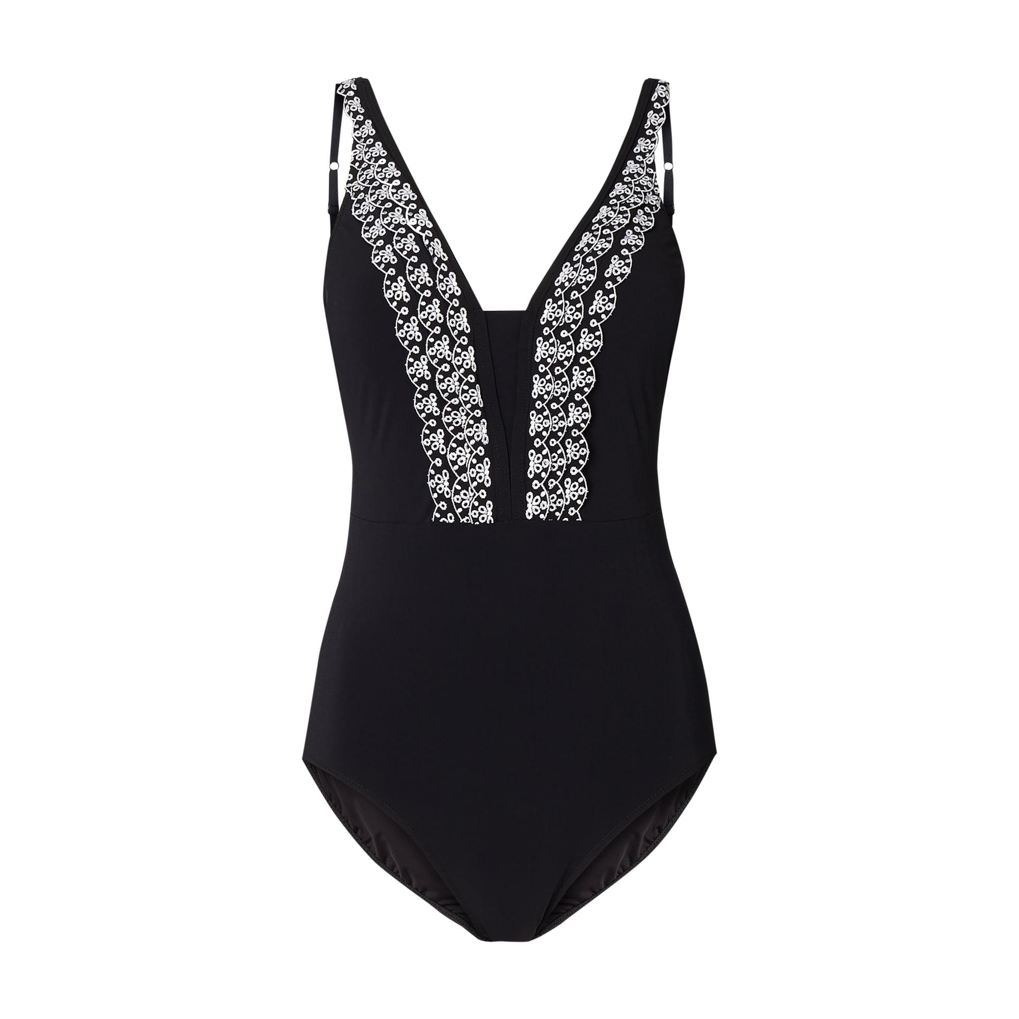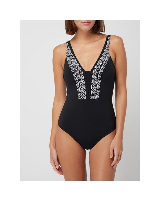 Der Badeanzug von Profile by Gottex ist aus elastischem Material gefertigt und körperbetont geschnitten. Er zeigt sich mit Lochstickerei im Stufen-Look, V-Ausschnitt und wattierten Cups. Badeanzug von Profile by Gottex, Elastisches Material, Körperbetonter Schnitt, V-Ausschnitt, Schmale, verstellbare Träger, Wattierte Cups, Besatz aus Lochstickerei im Stufen-Look, Hoher Beinausschnitt, Tiefer Rückenausschnitt, Rückenlänge bei Größe 36: 68 c. Farbe: schwarz