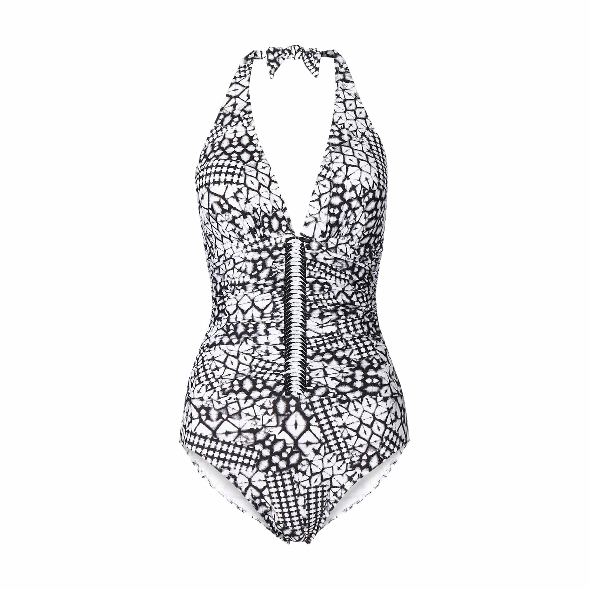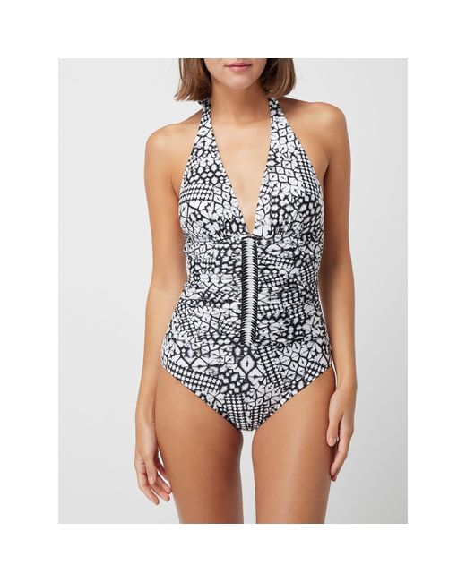 Der Badeanzug von Profily by Gottex ist aus elastischem Material gefertigt. Er kommt mit wattierten Cups, Neckholder und tiefem Rückenausschnitt. Die gelegten Falten und das abstrakte Muster komplettieren das Design. Badeanzug von Profily by Gottex, Elastisches Material , Wattierte Cups, Neckholder zum Binden , Tiefer Rückenausschnitt, Drapierung mit gelegten Falten, Raffungen, Hoher Beinausschnitt, Abstraktes Muster , Rückenlänge bei Größe 36: 73 c. Farbe: schwarz