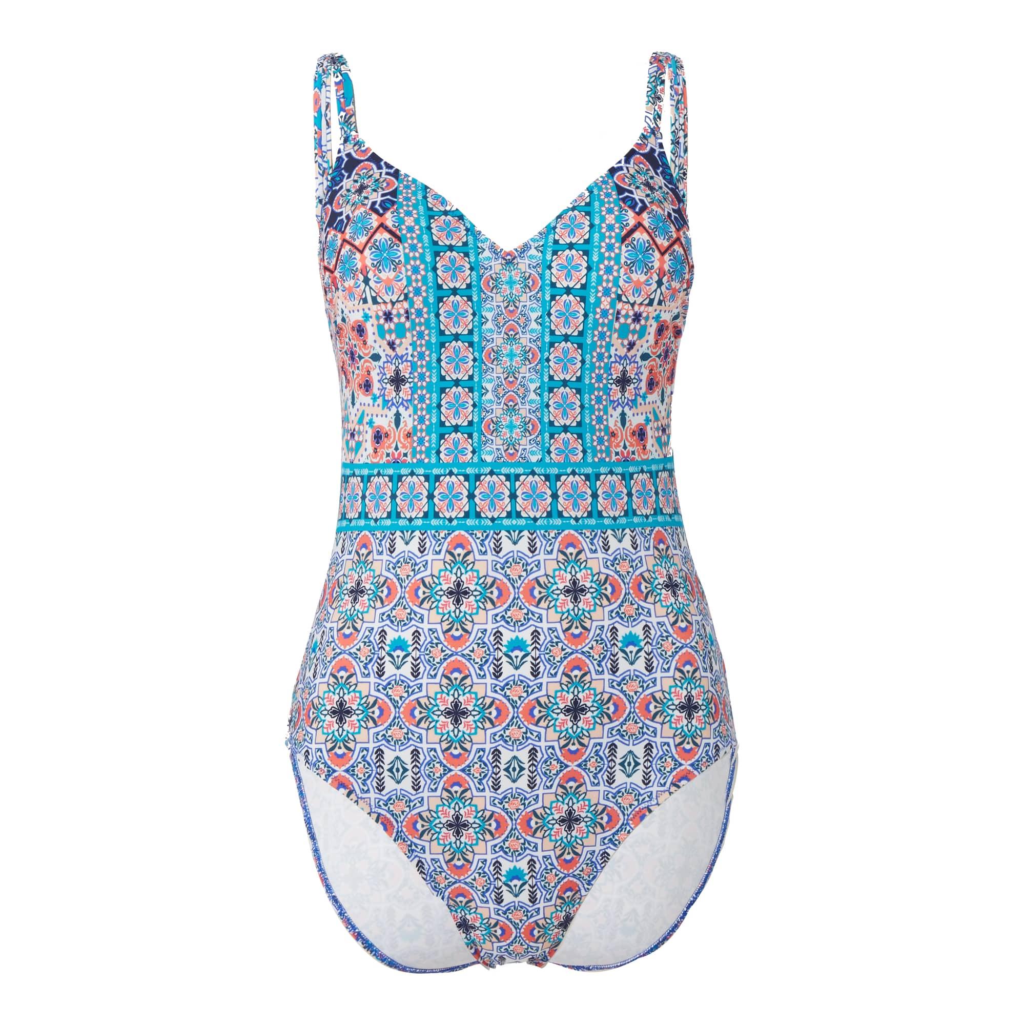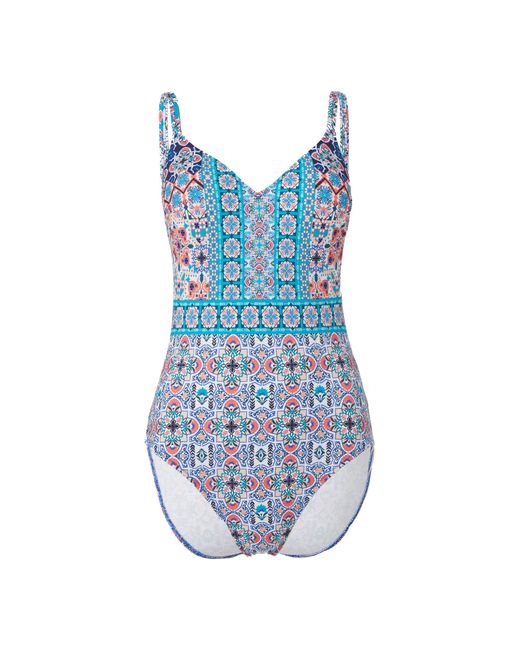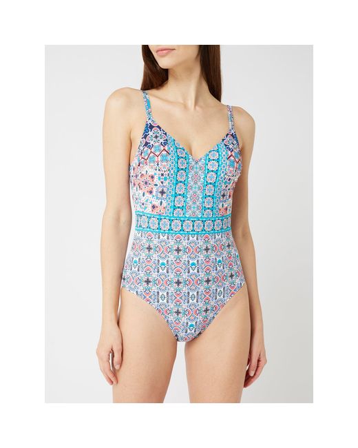 Der Badeanzug von Profile by Gottex ist aus elastischem Material gefertigt und körperbetont geschnitten. Er kommt mit wattierten Cups, ornamentalem Muster und verstellbaren Trägern. Badeanzug von Profile by Gottex, Elastisches Material, Körperbetonter Schnitt, Wattierte Cups, Ornamentales Muster, V-Ausschnitt, Verstellbare Spaghettiträger, Tiefer Rückenausschnitt, Rückenlänge bei Größe 36: 63 c. Farbe: blau