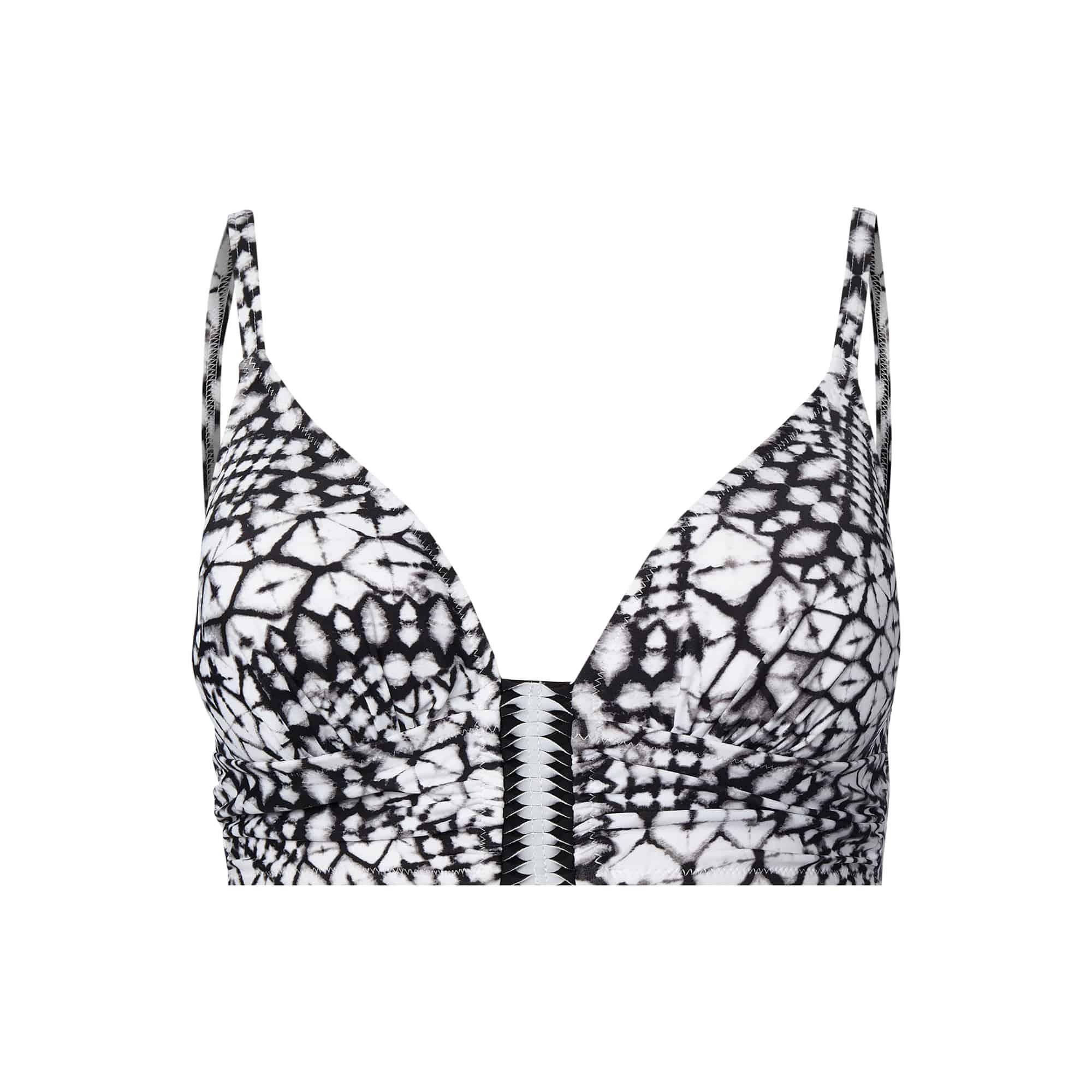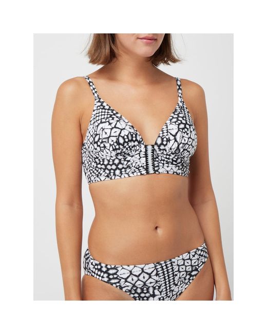 Das Bikini-Oberteil von Profile by Gottex ist aus schnelltrocknendem Material gefertigt. Es zeigt sich in Triangel-Form mit verstellbaren Trägern, Schnürung und Drapierungen. Bikini-Oberteil von Profile by Gottex, Schnelltrocknendes Material , Triangel-Form , Batikoptik, Verstellbare Träger, Schnürung auf der Rückseite , Drapierungen , Fixierte Falt. Farbe: schwarz