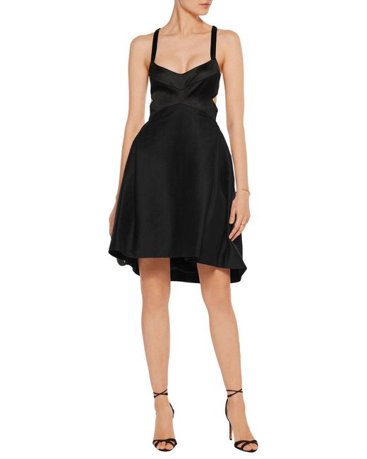 Satin, Tuch, ohne Applikationen, einfarbig, ärmellos, tiefer Ausschnitt, viele Taschen, gefüttert, rückseitiger Verschluss, Reißverschluss, Kreisrock. 81% Baumwolle, 19% Seide, Acetat, Polyamid, Elastan. Farbe: schwarz