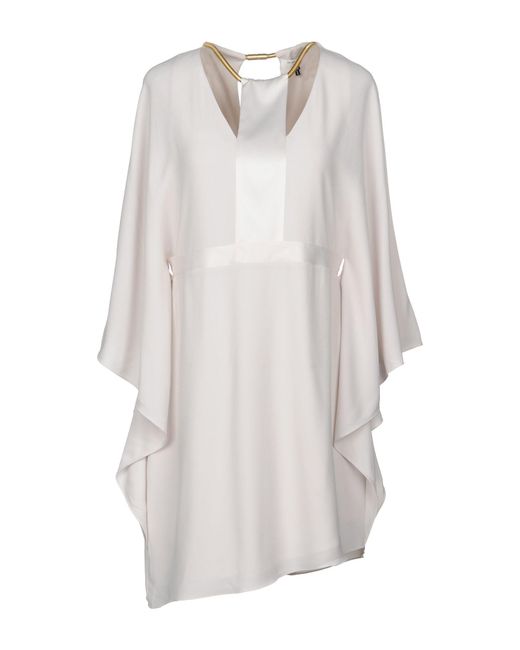 Satin, Krepp, Metallapplikationen, einfarbig, Rundhalsausschnitt, 3/4 Arm, ohne Taschen, gefüttert, rückseitiger Verschluss, Reiß- und Häkchenverschluss, Bleistiftmodell. 60% Triacetat, 40% Polyester. Farbe: weiß
