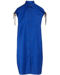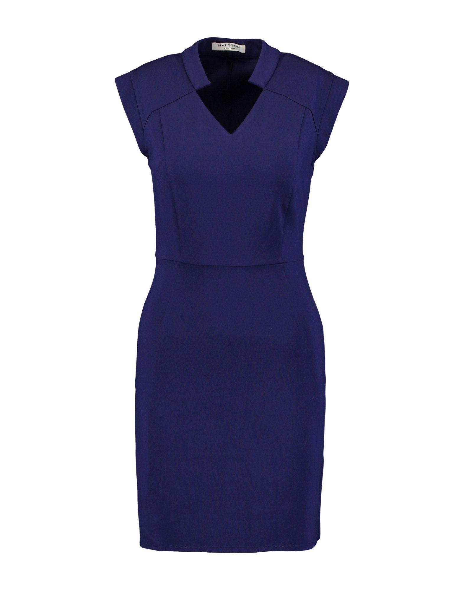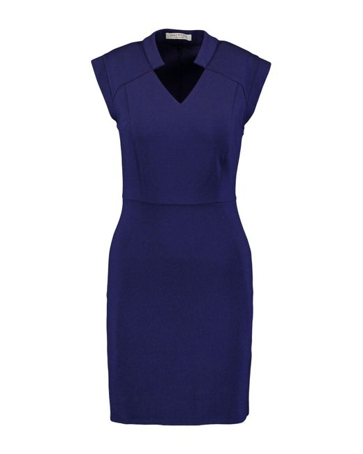 Jersey, ohne Applikationen, Grund einfarbig, V-Ausschnitt, ärmellos, ohne Taschen, ungefüttert, seitlicher Verschluss, Reißverschluss, Stretch, A-Linienmodell. 67% Viskose, 28% Nylon, 5% Elastan. Farbe: blau