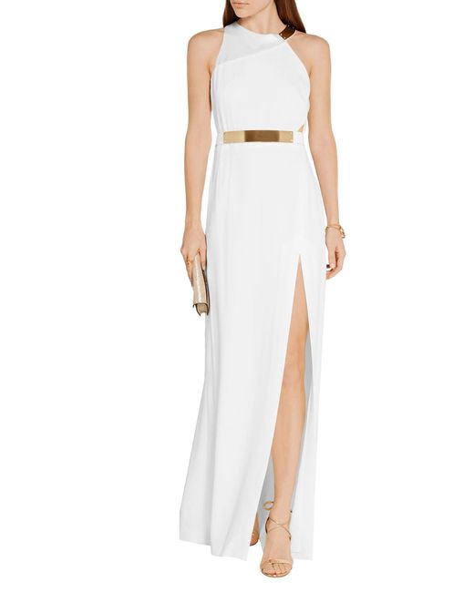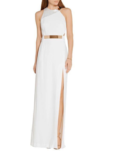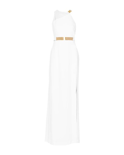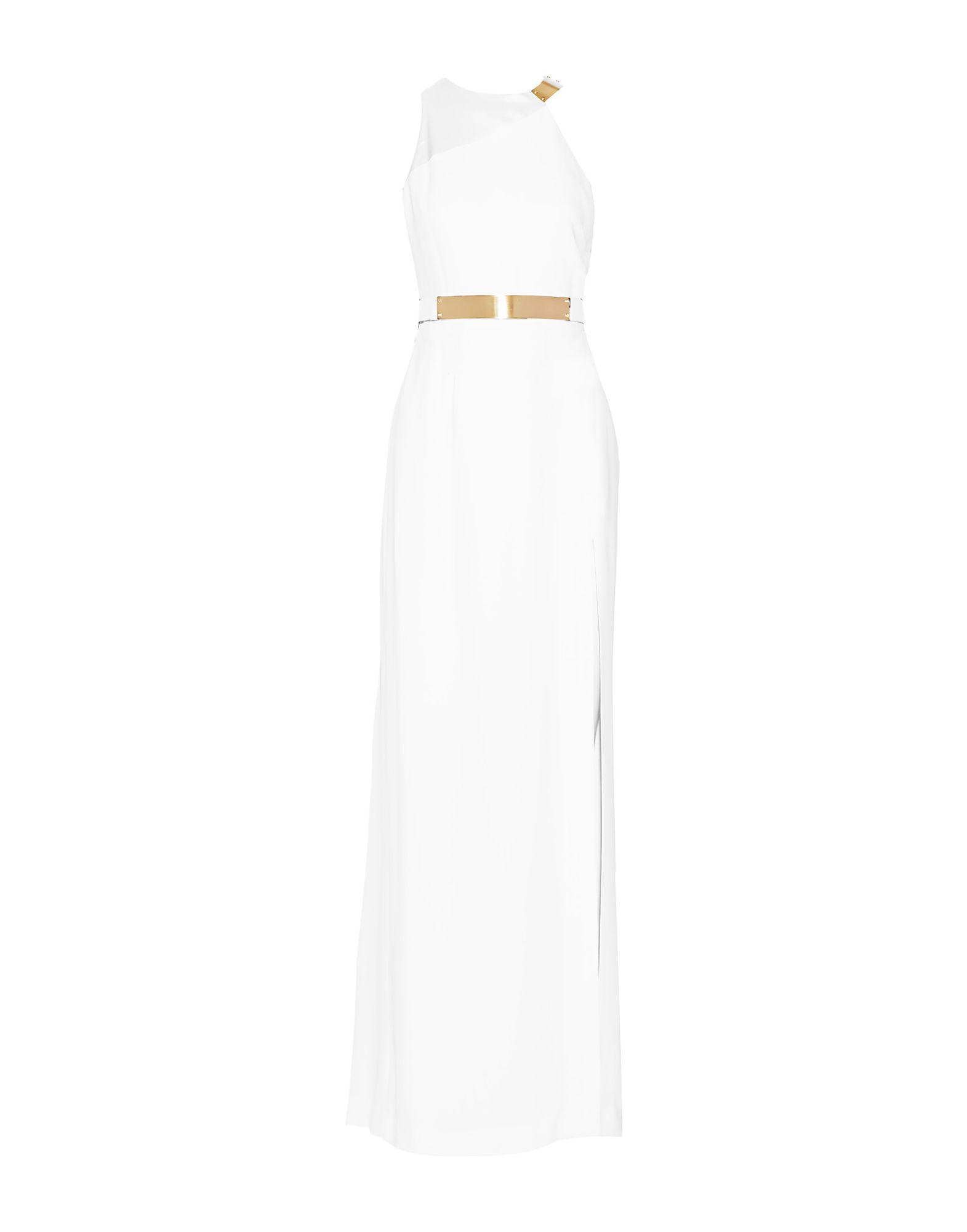 Satin, Krepp, Gürtel, Abnäher, einfarbig, Rundhalsausschnitt, ärmellos, ohne Taschen, Schlitz vorne, gefüttert, rückseitiger Verschluss, Reiß- und Häkchenverschluss, Kleid. 65% Triacetat, 35% Polyester. Farbe: weiß