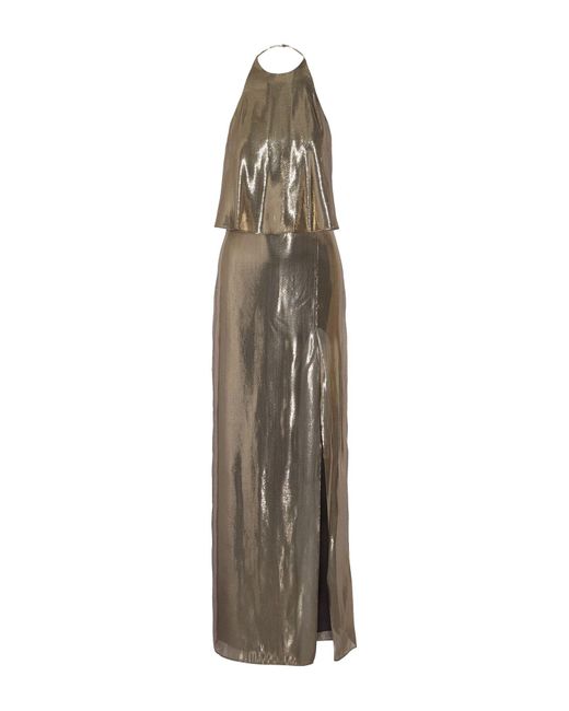 Tuch, Lamé, ohne Applikationen, einfarbig, Rundhalsausschnitt, ärmellos, ohne Taschen, gefüttert, rückseitiger Verschluss, Reißverschluss, Kleid. 66% Seide, 34% Metallfaser, Polyester, Elastan. Farbe: mehrfarbig