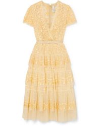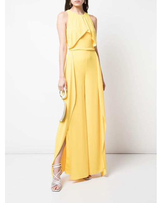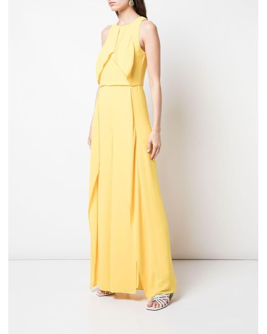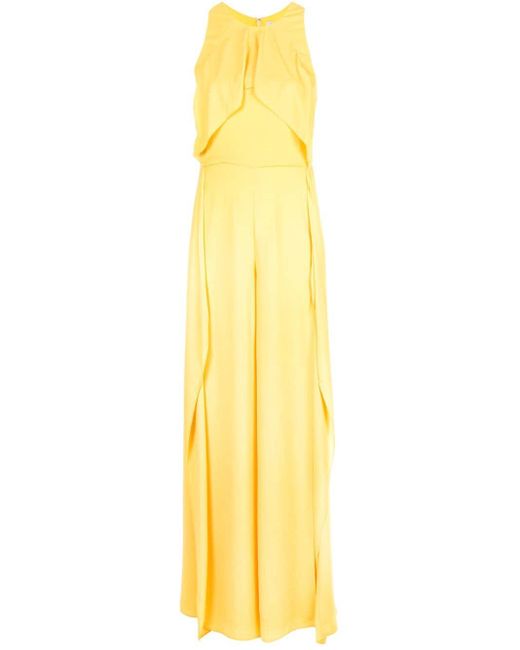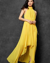 Robe im Layering-Look von Halston Heritage. Merkmale: Neckholder-Ausschnitt, ärmelloses Design, Lagen-Look, tailliert und verdeckter Reißverschluss hinten. Farbe: gelb