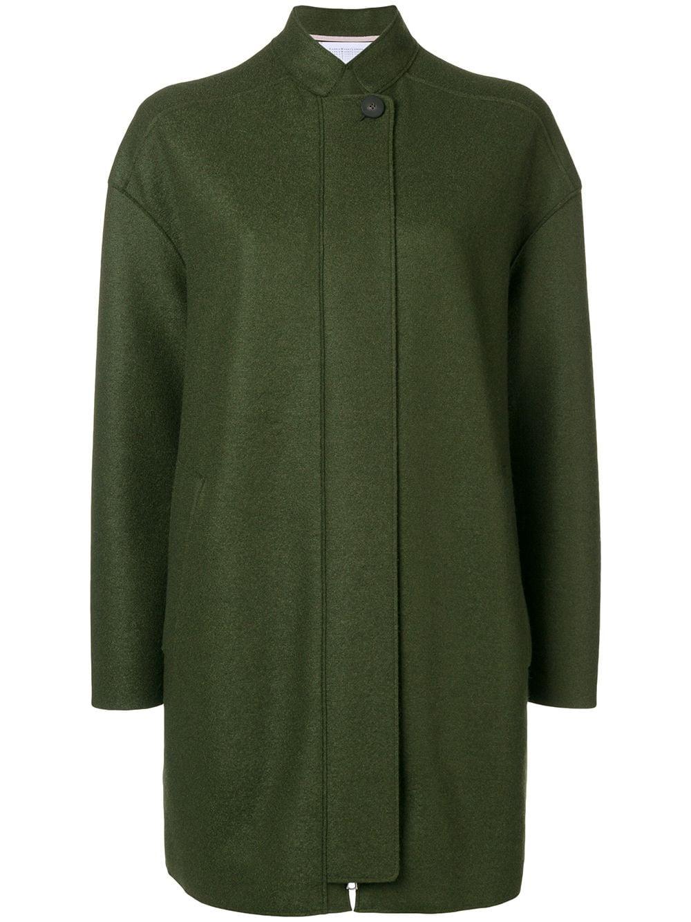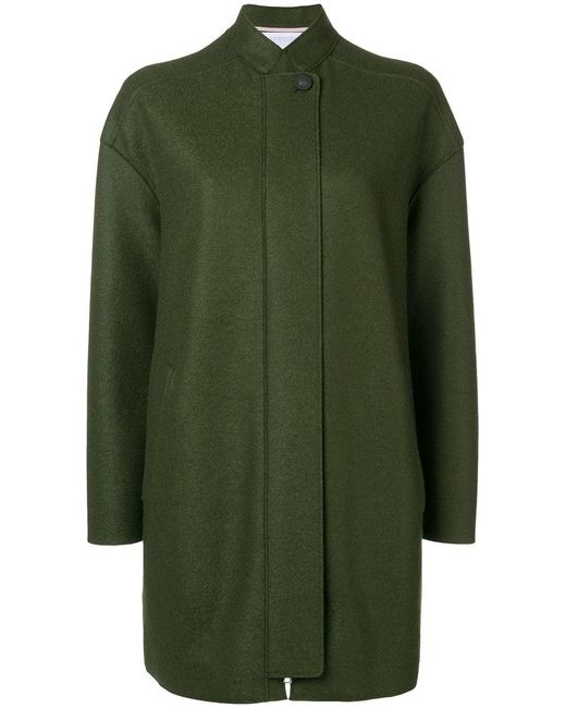 Mantel mit Reißverschluss aus Schurwolle von Harris Wharf London mit folgenden Eigenschaften: Stehkragen, lange Ärmel und mittellanger Schnitt. Farbe: grün