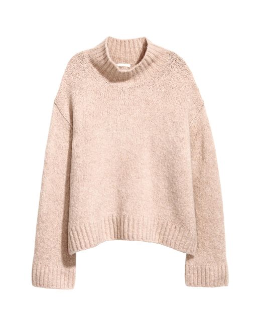 Pullover aus weichem Strick mit Wollanteil. Modell mit Stehkragen, stark überschnittenen Schultern und langen weiten Ärmeln. Gerade Passform. Farbe: pink