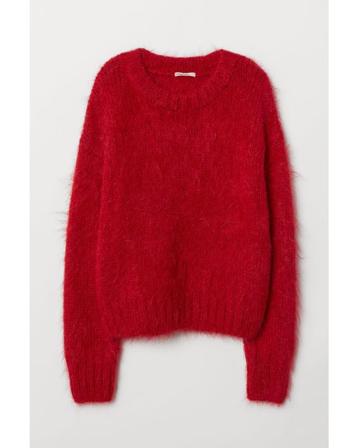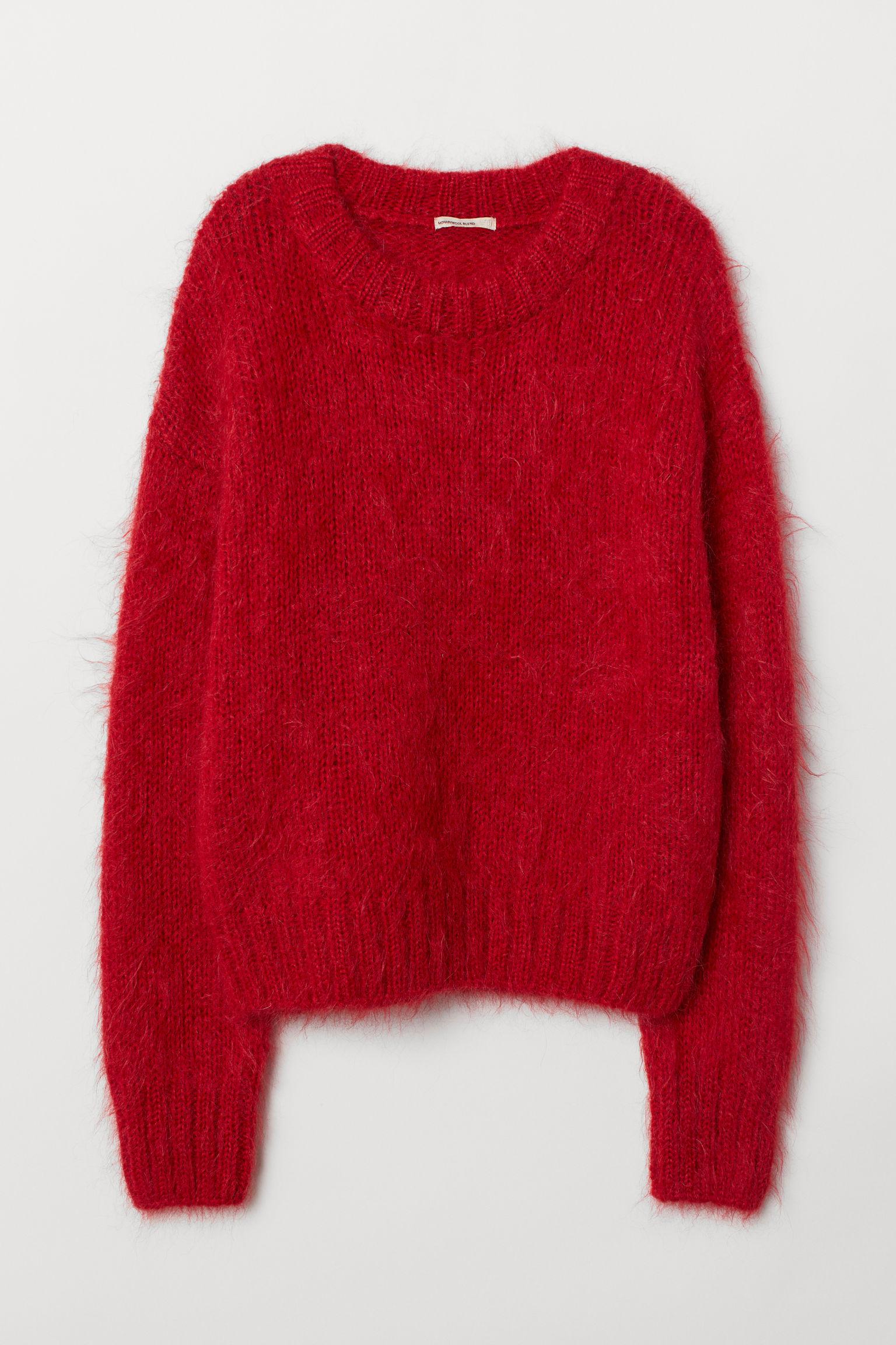 PREMIUM QUALITÄT. Pullover aus einer weichen Wollmischung mit angerautem Finish. Mit breiten Rippenbündchen an Halsausschnitt, Ärmeln und Saum. Farbe: rot
