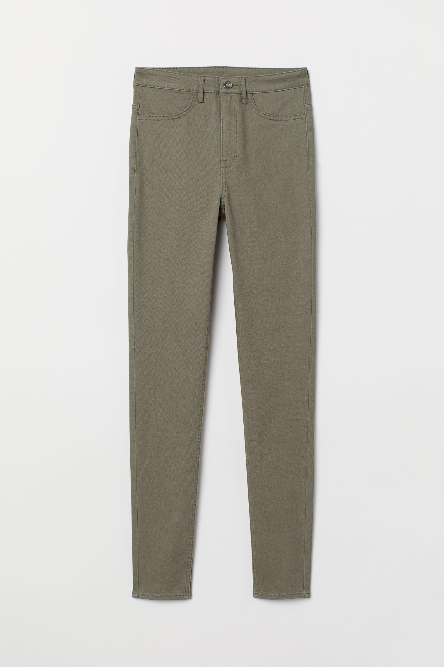 Jeans aus superstretchigem, gewaschenem Denim mit superschmalem Bein und hohem Bund. Ziertaschen vorn und echte Taschen hinten. Reißverschluss und Knopf vorn. Farbe: grün