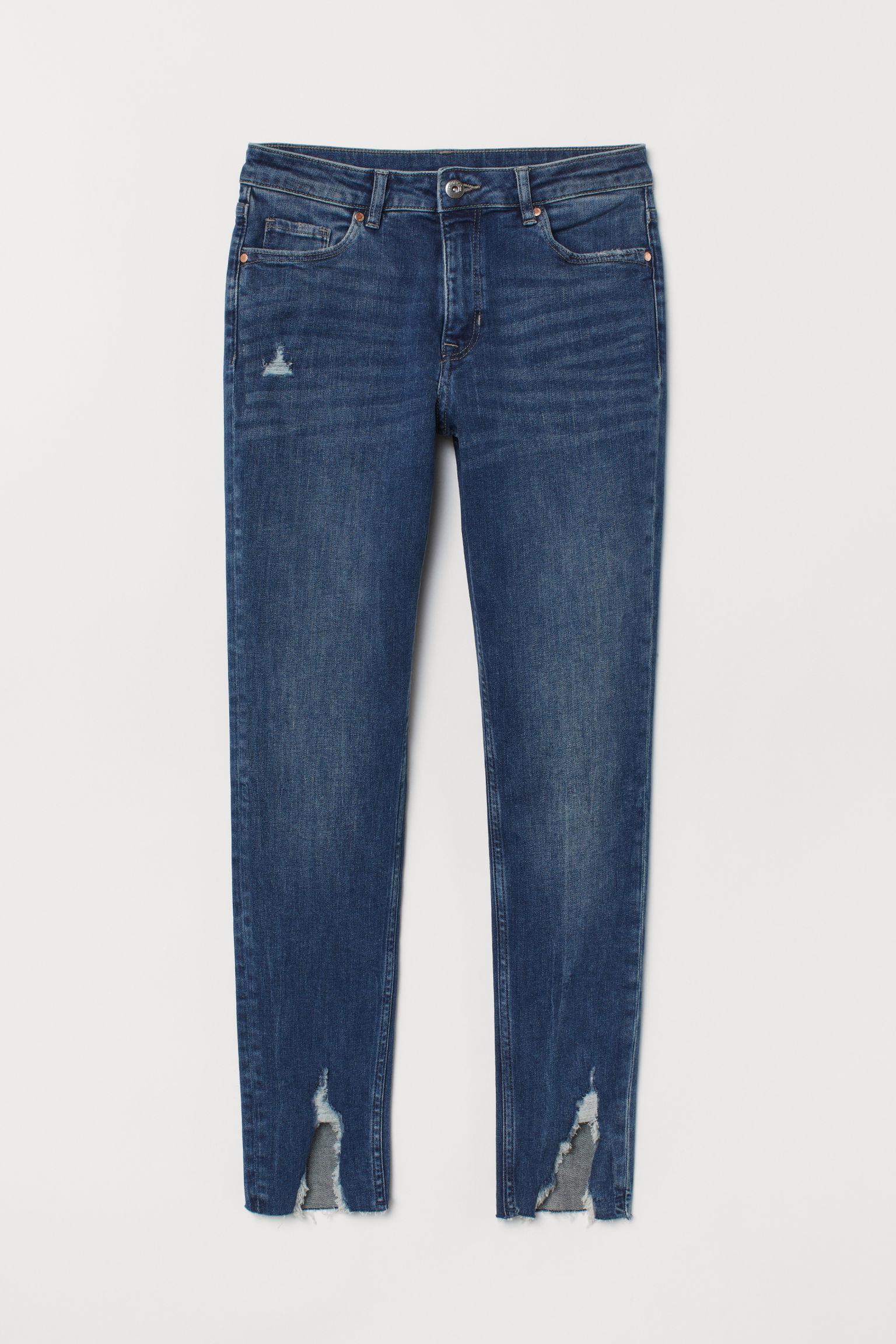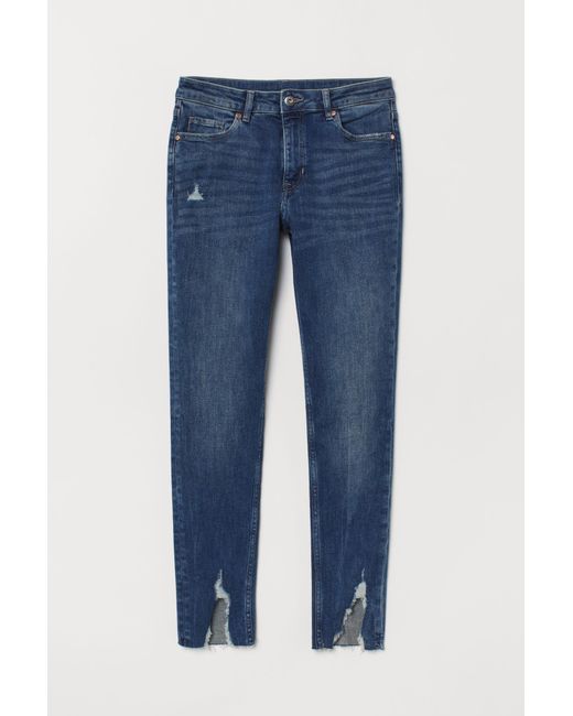 5-Pocket-Jeans aus superstretchigem, gewaschenem Denim mit markanten Used-Details. Modell mit normaler Bundhöhe und superschmalen Beinen mit offener Kante. Reißverschluss und Knopf vorn. Farbe: blau