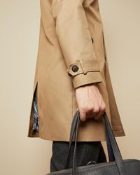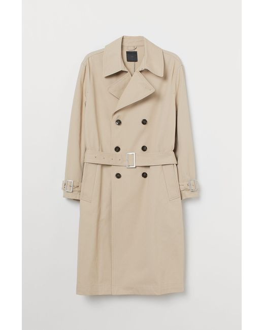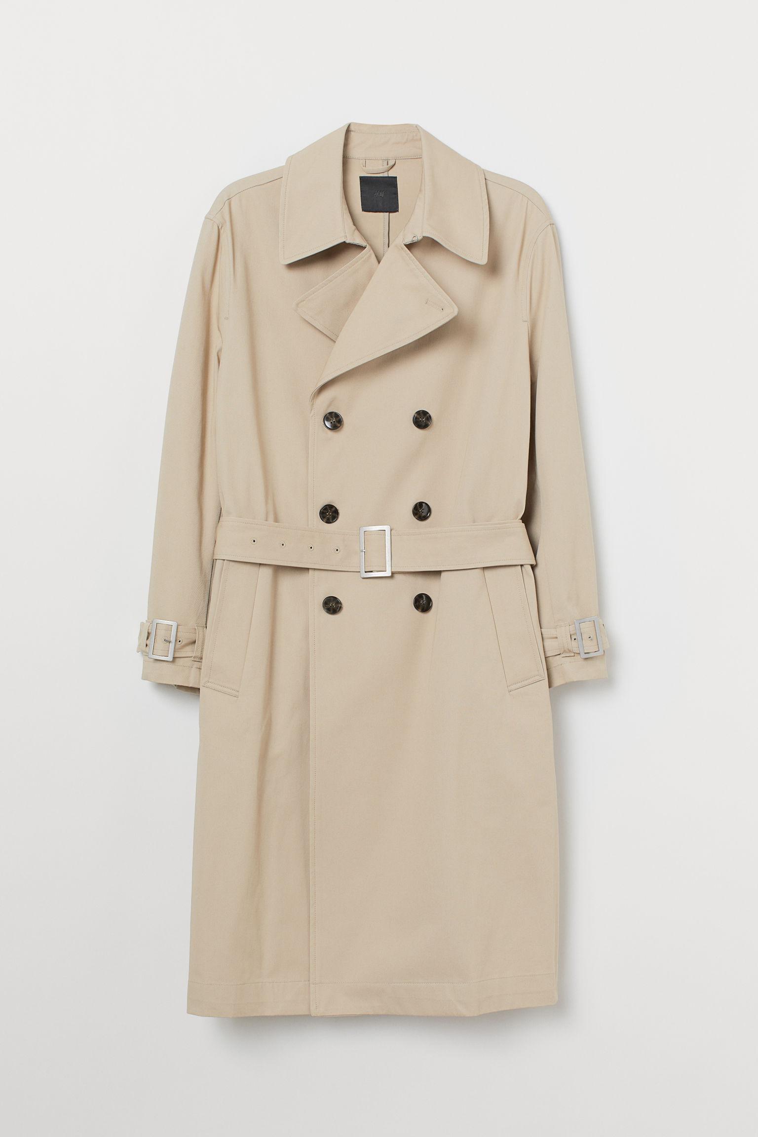 Zweireihiger Trenchcoat aus Baumwolle. Der Mantel hat ein Revers mit Knopfloch und verdecktem Häkchenverschluss. Seitliche Taschen und in der Taille ein abnehmbarer Gürtel. Regulierbare Riegel mit Schnalle an den Ärmelabschlüssen und ein Gehschlitz im Rücken. Ungefüttert. Farbe: natur
