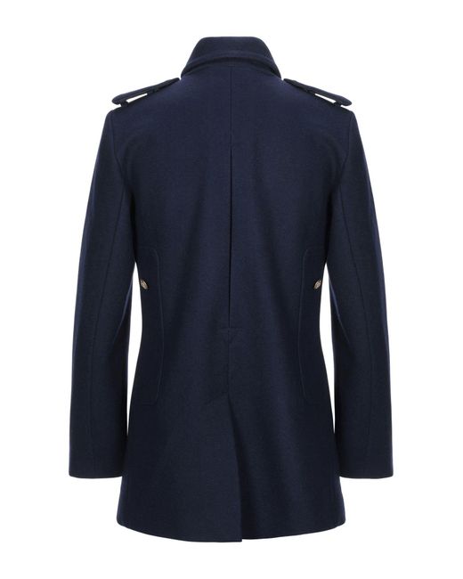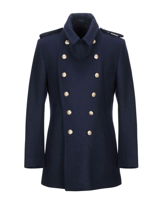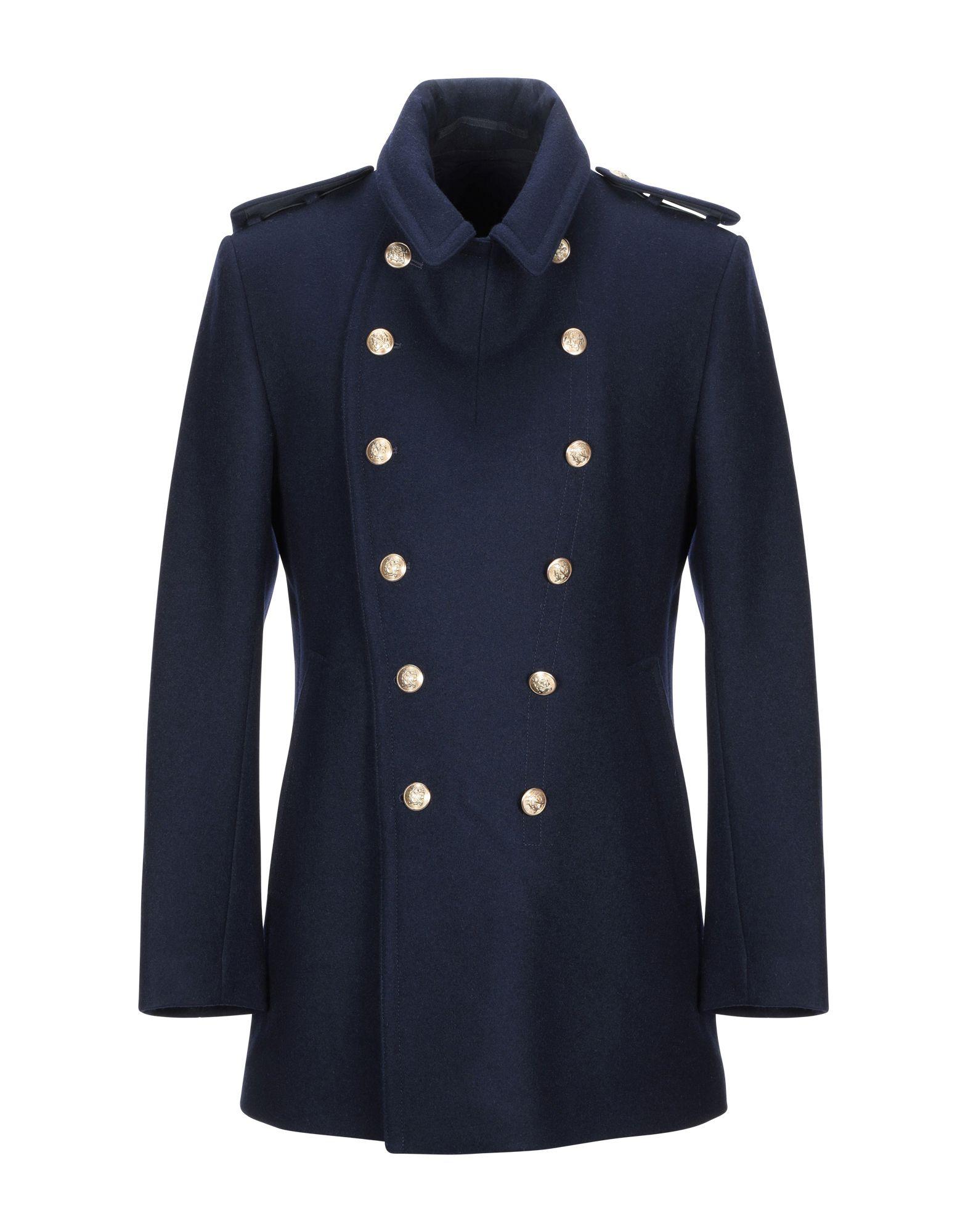 Wollstoff, Epaulette, einfarbig, Zweireiher, Knöpfe, Reverskragen, viele Taschen, lange Ärmel, gefüttert. 100% Wolle. Farbe: blau