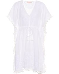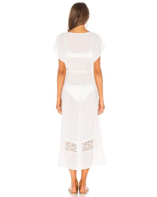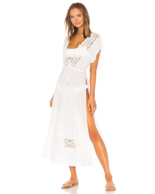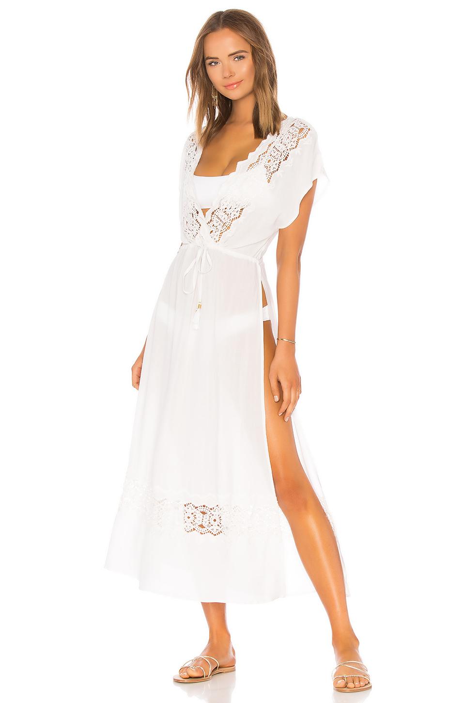 LSPACE Sunset Cover Up in White. Handwäsche, kalt. Ungefüttert. Abschlüsse aus Spitze. Kordelzug mit Troddeln an der Taille. Bertriebene Seitenschlitzen. Halbdurchsichtig. Farbe: weiß