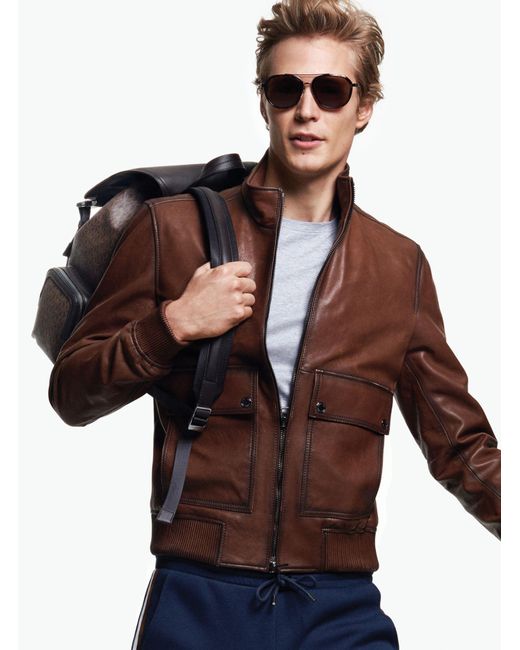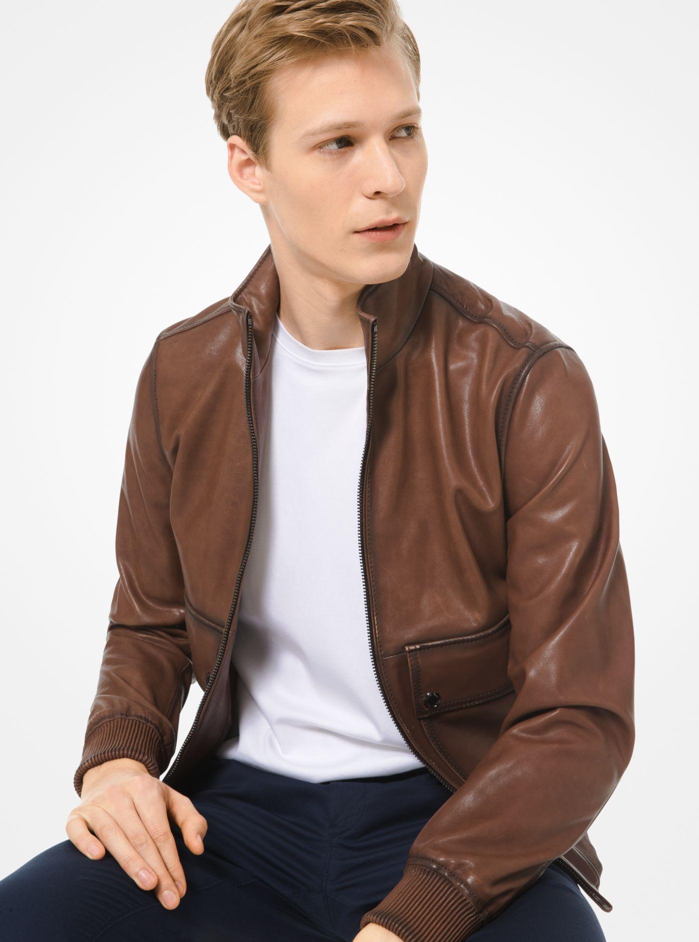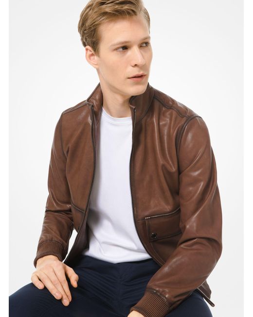 Herren Bomberjacke aus Leder in braun