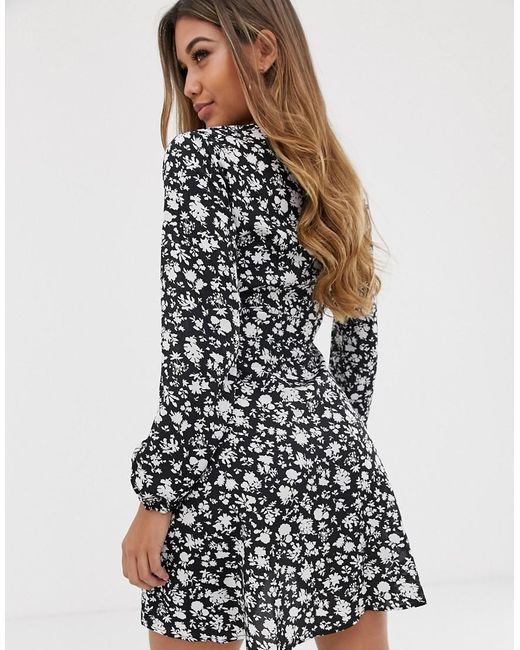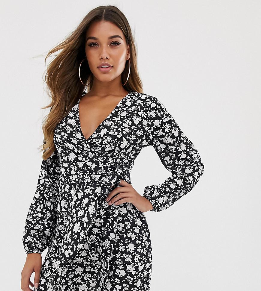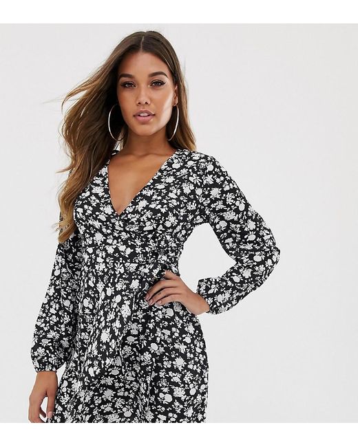 Damen Geblümtes Freizeitkleid mit seitlichem Wickeldesign in schwarz