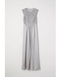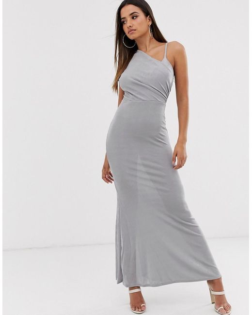 Damen One-Shoulder-Maxikleid mit Wickeleffekt vorn in grau