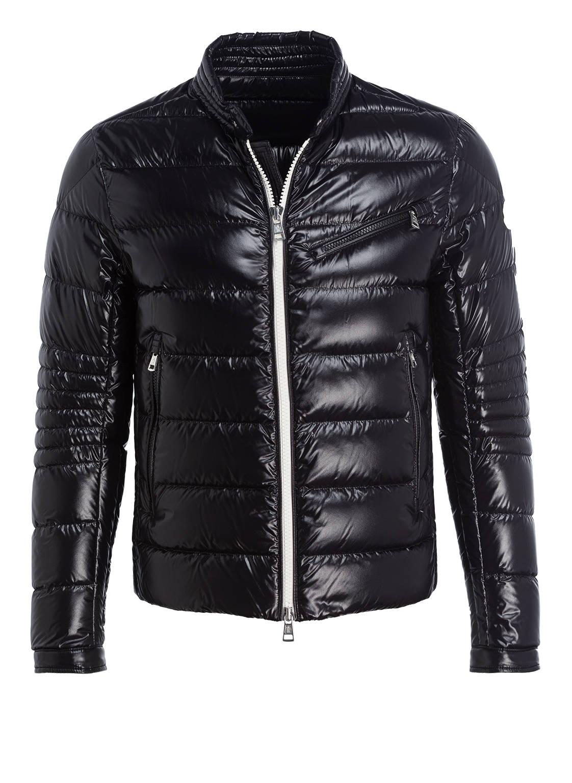 Für kühle und nasse Tage: die Daunenjacke BERRIAT von MONCLER. Das Modell ist mit vielen Details ausgestattet, die nicht unbeachtet bleiben sollten. Sie ist aus lackiertem Nylon gefertigt, welches von einer Wattierung aus Daunen und Federn ergänzt wird. Abgerundet wird der Style von einem charakteristischen Logo aus Wollstoff auf dem Ärmel. Lassen Sie sich von schlechtem Wetter nicht abschrecken! Gerader Schnitt. Hochabschließender Kragen mit Druckknopf. Schließt mit Zwei-Wege-Reißverschluss. Reißverschlusstasche auf Brusthöhe. Seitliche Eingrifftaschen mit Reißverschlüssen. Weitenverstellbare Ärmelenden mit Druckknöpfen. Gefütterte Verarbeitung mit Daunen und Federn. Gesteppte Opik. Lack-Finish. Logo auf dem Ärmel. Maße bei Größe 48:- Rückenlänge ab Schulter: 62 cm- Ärmellänge: 66 cm- Taillenweite: 108 cm. Farbe: schwarz