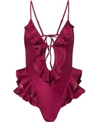 Damen Swimwear One Shoulder Block Swimsuit in rot