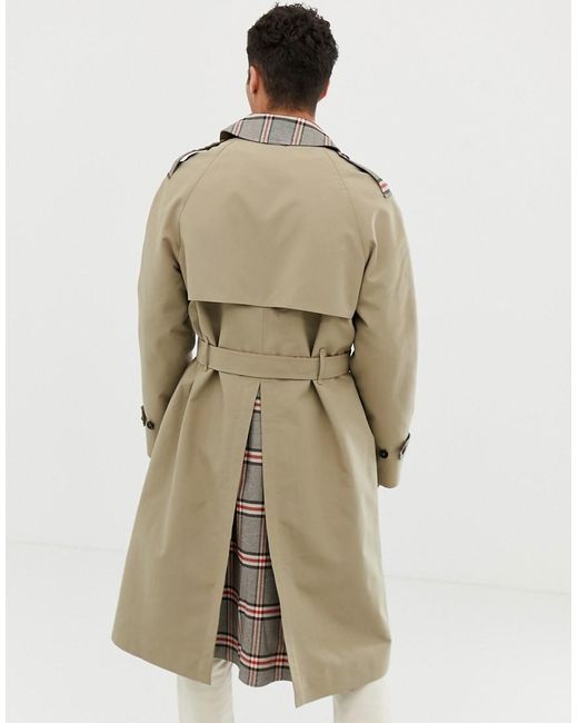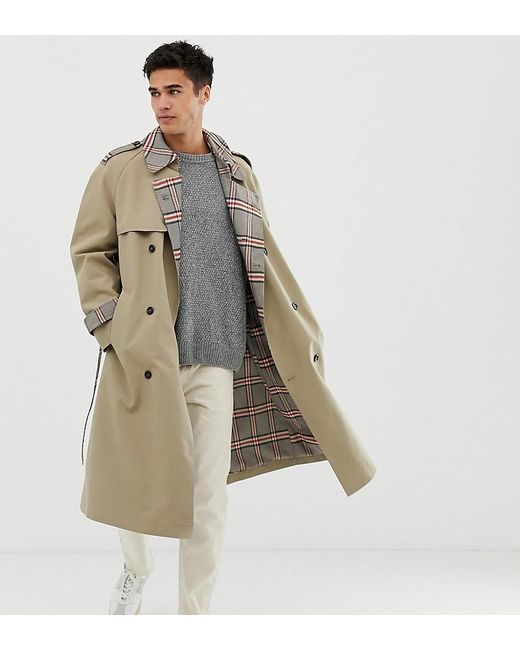 Herren Trenchcoat in Stone mit Karofutter in natur