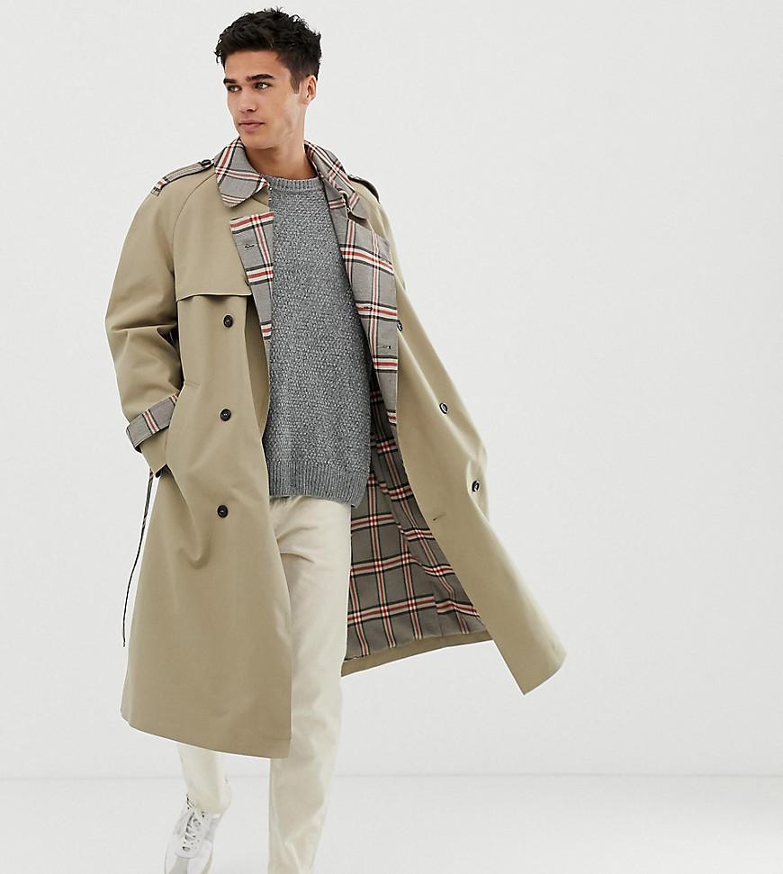 Trenchcoat in Stone mit Karofutter