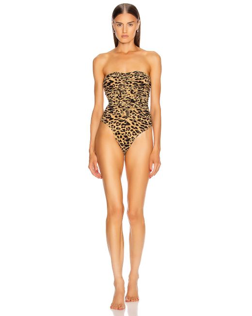 Norma kamali slinky marissa swimsuit in golden leopard - animal print,neutral. 95% polyester, 5% spandex. Hergestellt in china. Handwäsche. Gerafftes-stoff-detail. Stretch. Sie ist bekannt für ihre innovative und gleichzeitig zeitlose modephilosophie. Norma kamali hat nicht nur eine beliebte bademodenkollektion, sondern produziert auch zeitlos-modische kleidungsstücke jeder kategorie. Farbe: mehrfarbig