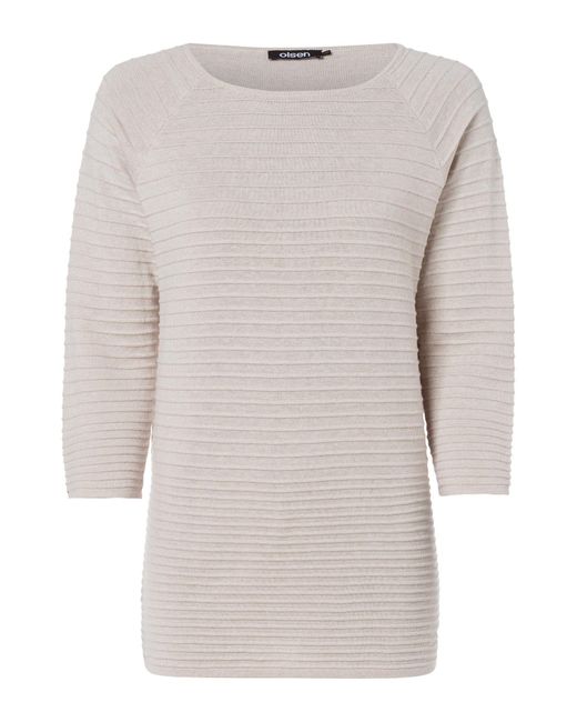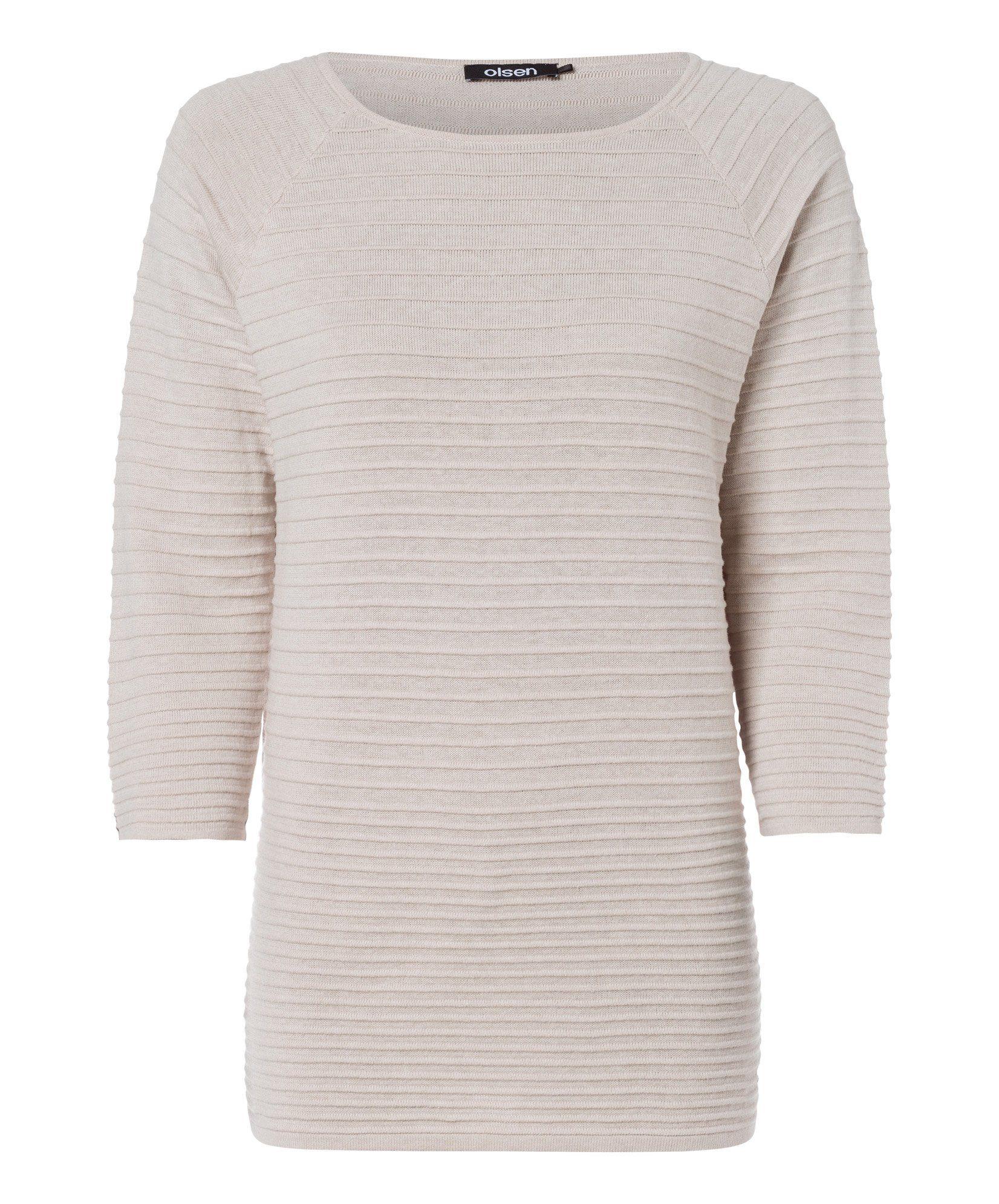 Dieser Pullover aus einer Baumwollmischung liegt angenehm leicht auf der Haut. In der gerade Olsen-Passform "Henny ́ ́ geschnitten, sitzt er leicht figurumspielend. Die quergerippte Strickstruktur und die 3/4-Ärmel geben dem Pullover einen sportlichen Look. Raffiniertes Detail ist die auf den zweiten Blick sichtbare helle Seitennaht. Farbe: mehrfarbig