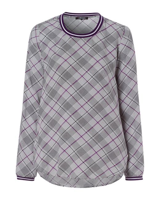 Eine schöne Alternative zur klassischen Bluse ist diese Langarmbluse von Olsen. Das trendige Glencheck-Muster wird durch farbige Akzentstreifen aufgelockert. Die optisch hervorgehobenen Säume an Ärmeln und Rundhalsausschnitt verleihen der Bluse eine sportive Note. Hinten etwas länger geschnitten als vorne fällt die Bluse locker figurumspielend. Farbe: schwarz