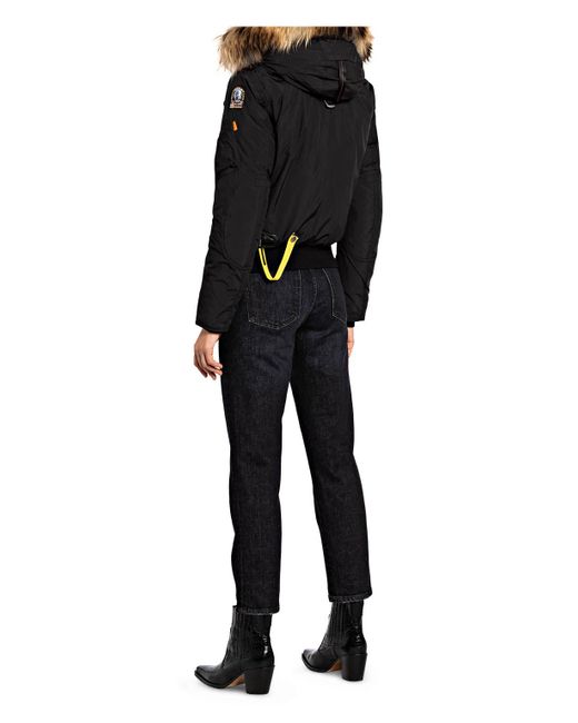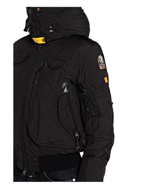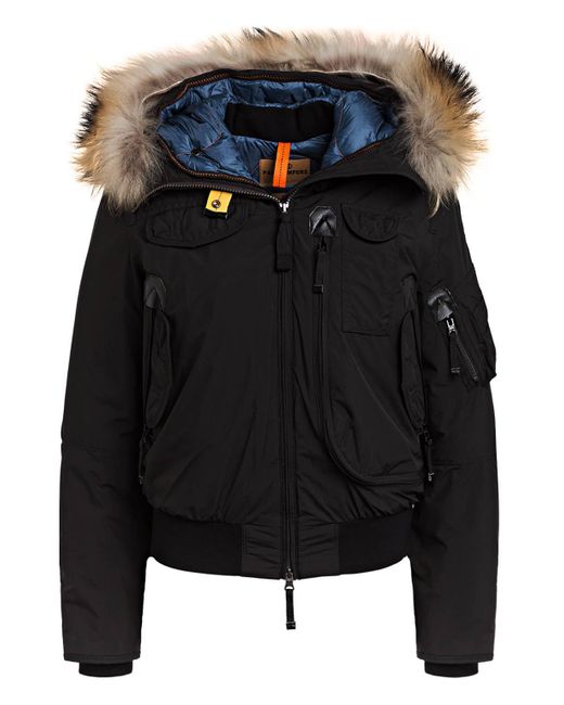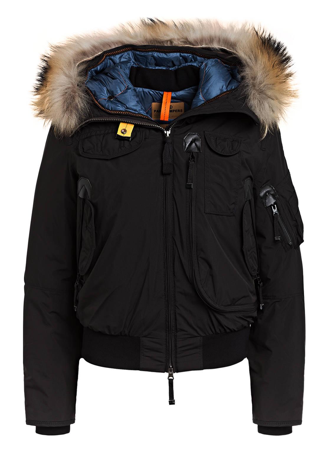 Sichern Sie sich für kalte Tage die Daunenjacke GOBI LIGHT von PARAJUMPERS: Das gefütterte Modell aus Daunen und Federn schützt Sie zuverlässig vor Wind und Wetter. Das Modell im Bomberjacken-Stil ist darüber hinaus mit zahlreichen Taschen sowie einer abnehmbaren Kapuze ausgestattet. Als exquisites Highlight zeigt sich ein abnehmbarer Echtpelzbesatz am Kragen. Abgerundet wird das Design durch ein Logo-Patch auf dem Ärmel. Ihr perfektes Fashion-Piece für den kommenden Winter! Gerader Schnitt. Hochabschließender Stehkragen mit Riegel. Kapuze mit Tunnelzug und abnehmbarem Echtpelzbesatz. Rippbündchen an Ärmeln und am Saum. Schließt mit Zweiwege-Reißverschluss und Druckknopfleiste. Wassersäule: 12.000 mm. Winddicht: 10. 000 g/sqm/24hrs. Diverse Außentaschen an Body und Ärmeln. Innentasche mit Zipper. Komplett gefüttert. Daunen-und Federfüllung. Maße bei Größe 36:- Rückenlänge ab Schulter: 58 cm- Ärmellänge: 64 cm- Brustweite: 104 cm- Taillenweite: 98 cm. Farbe: schwarz