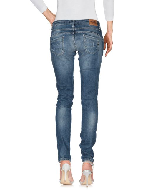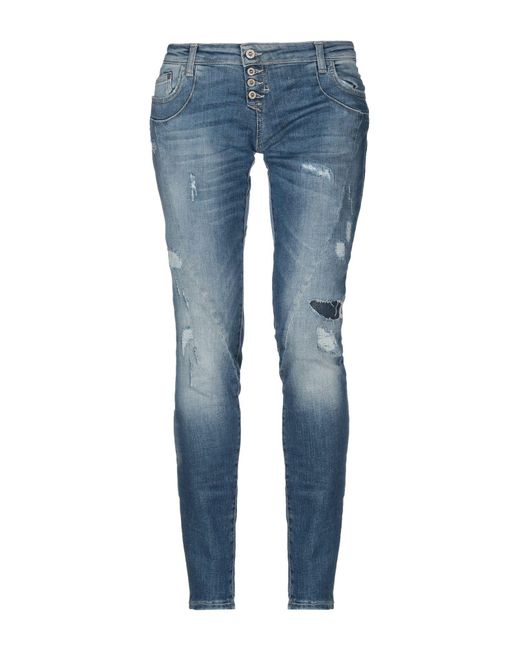 Denim, Used-Look, Délavé-Effekt, Logo, einfarbig, Mittlere Waschung, niedrige Taille, vorderseitiger Verschluss, Knöpfe, viele Taschen, Slim fit. 94% Baumwolle, 5% Polyester, 1% Elastan. Farbe: blau