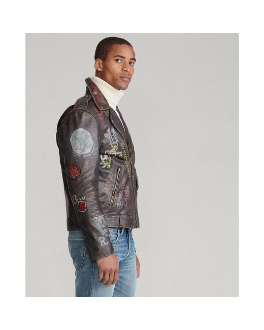 Herren Grafische Bikerjacke aus Leder